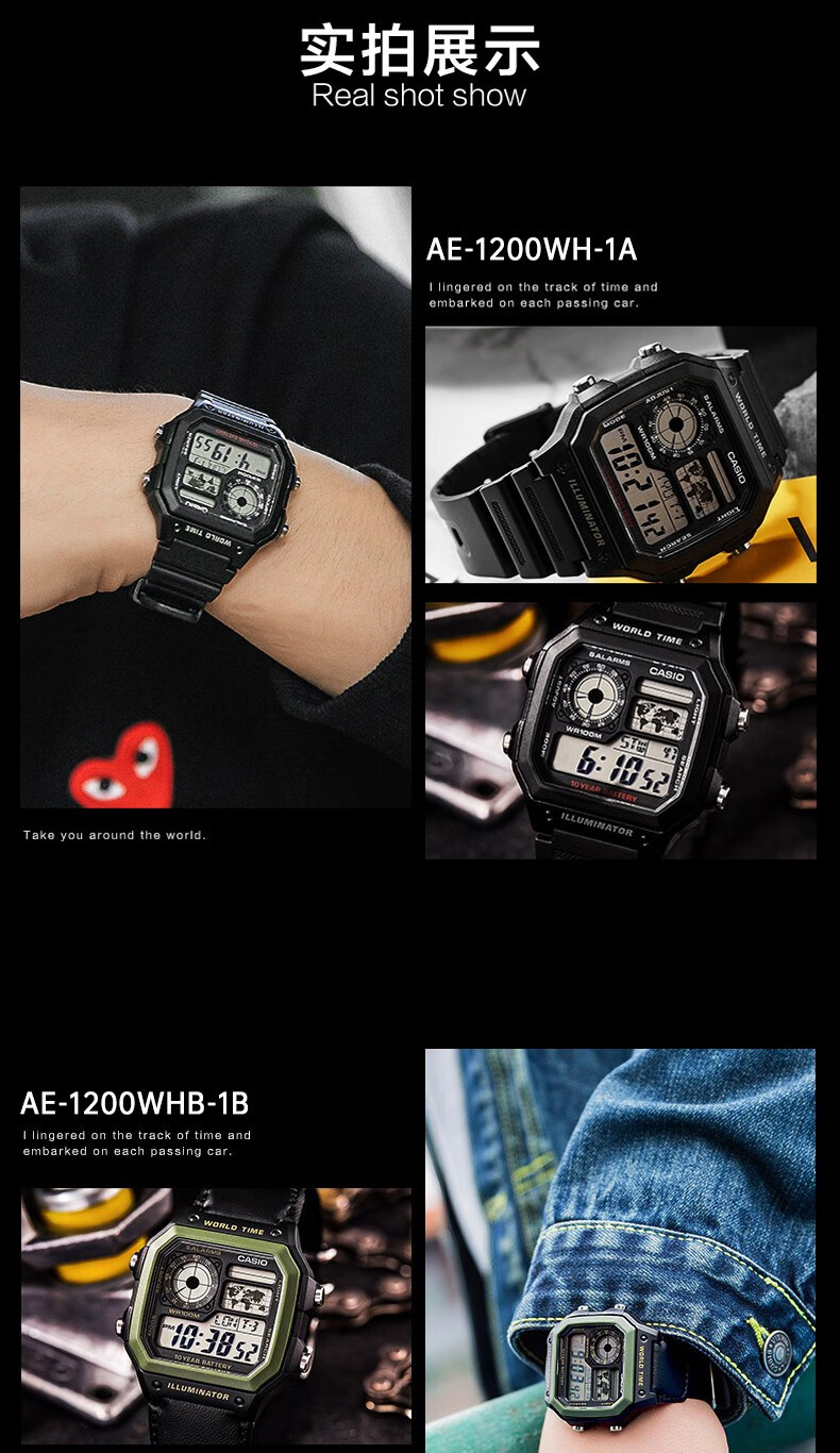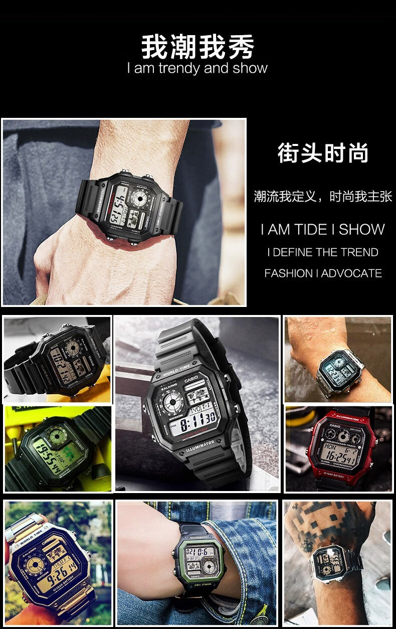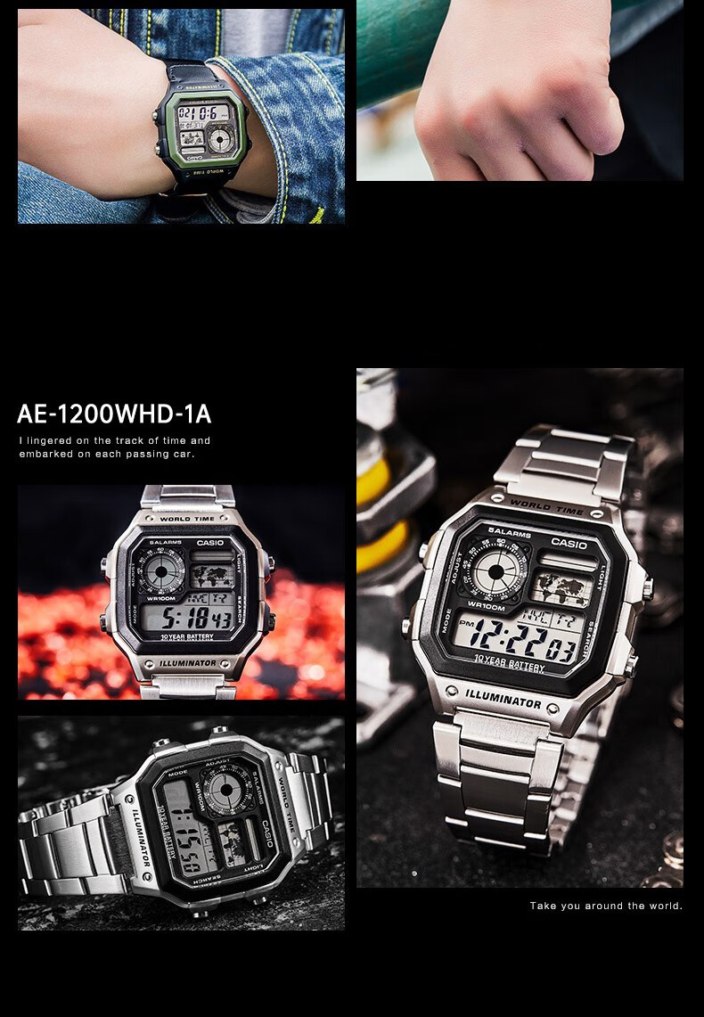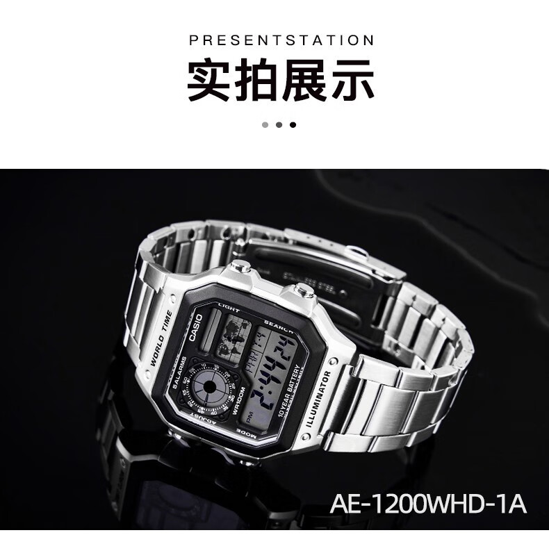 Casio watch retro small square sports student watch multi-functional long-lasting power waterproof men's watch AE-1200WHD-1A recommended by the store manager