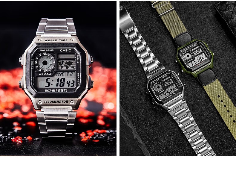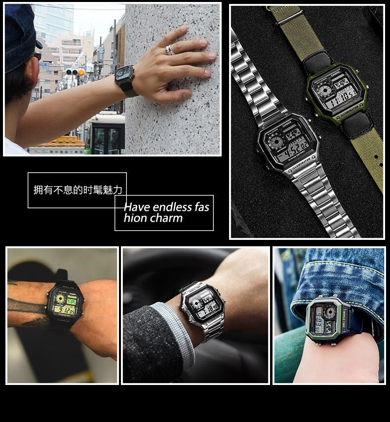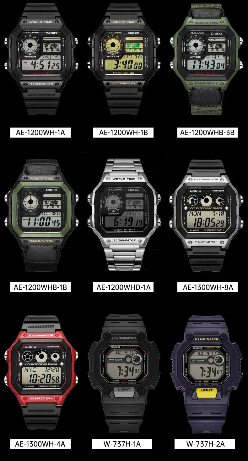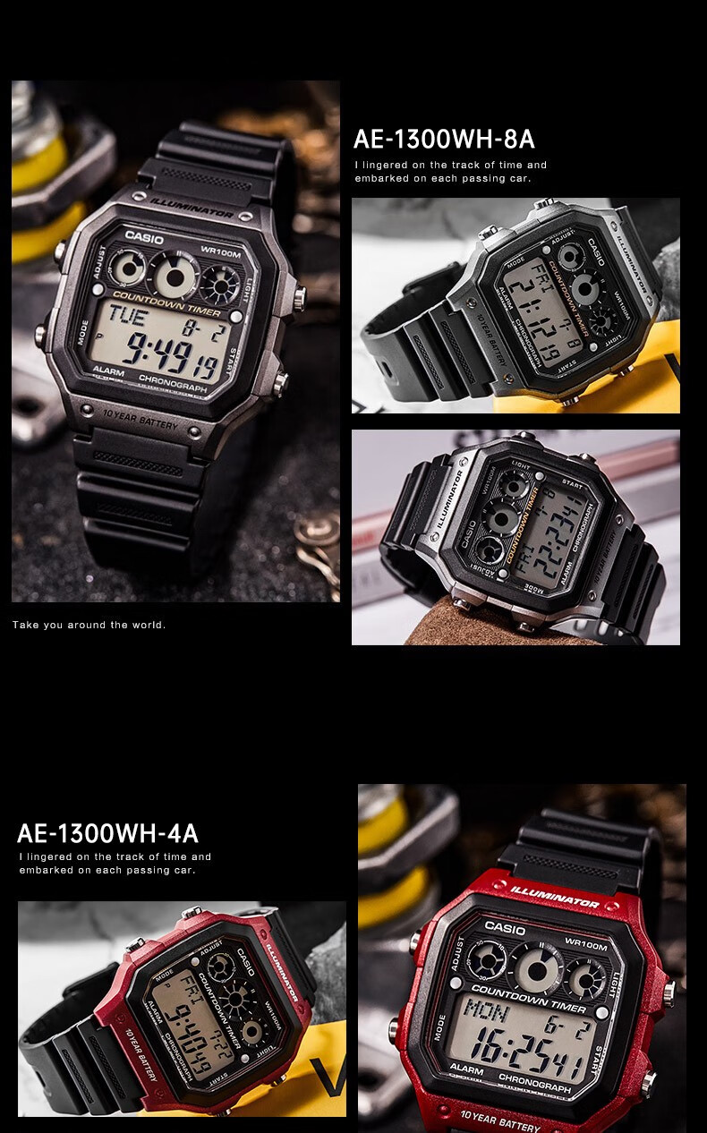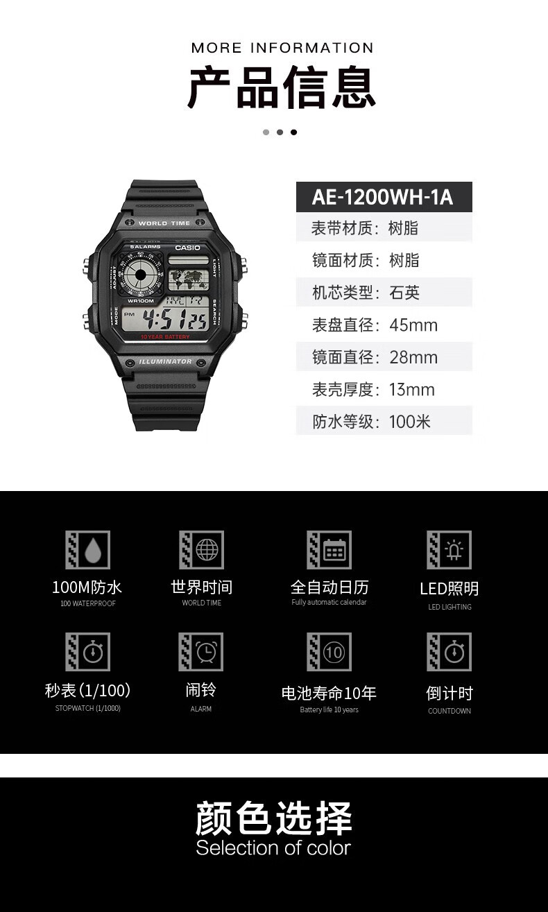 Casio watch retro small square sports student watch multi-functional long-lasting power waterproof men's watch AE-1200WHD-1A recommended by the store manager