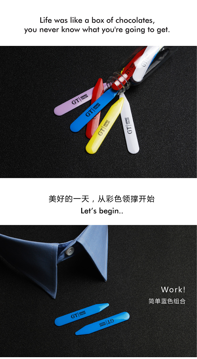 GENSZ Qingcang shirt collar support for men's and women's shirts, fixed collar inserts, environmentally friendly and opaque collar fixing artifact, short 6 colors 55.8mm*10mm