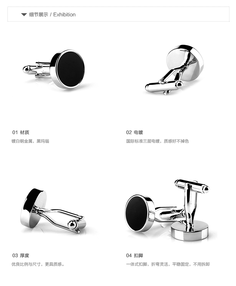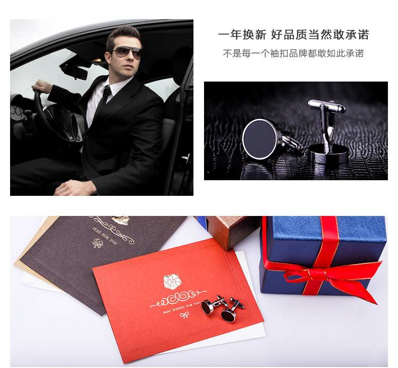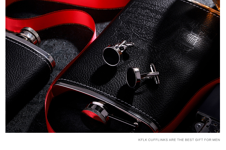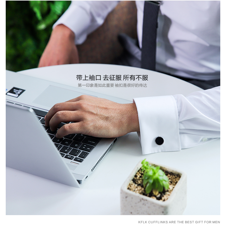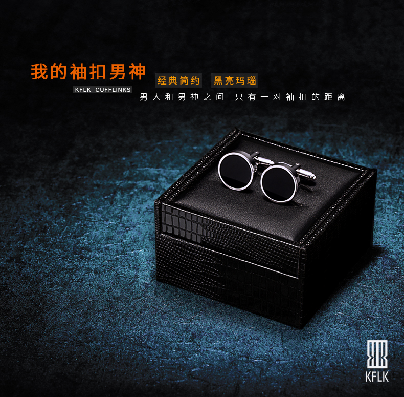 KFLK男士袖扣衬衫袖钉简约百搭高档衬衣商务礼物袖口扣 Cufflinks定制 黑色