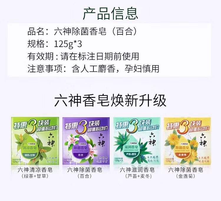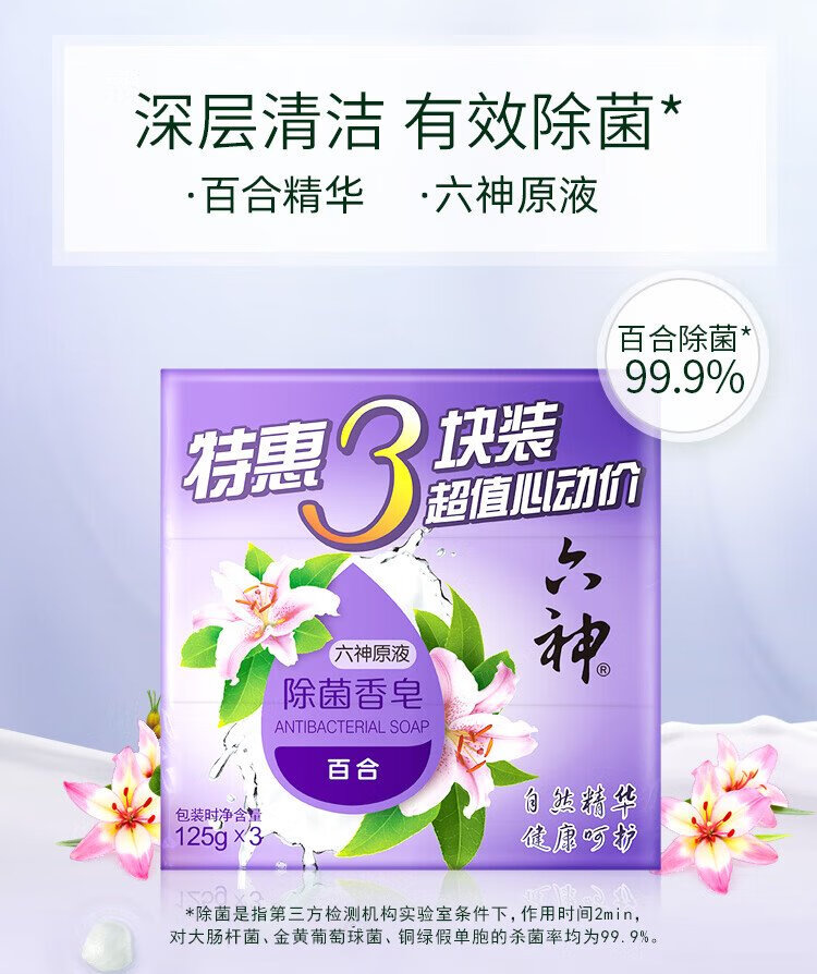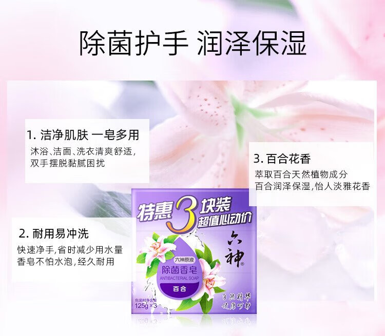 Liushen Family Pack of 3 Lily Essence Soap 125g*3 (Hand Soap, Face Soap, Moisturizing Soap)
