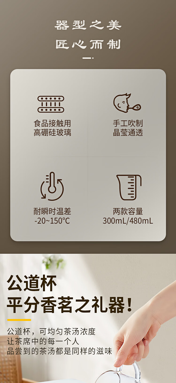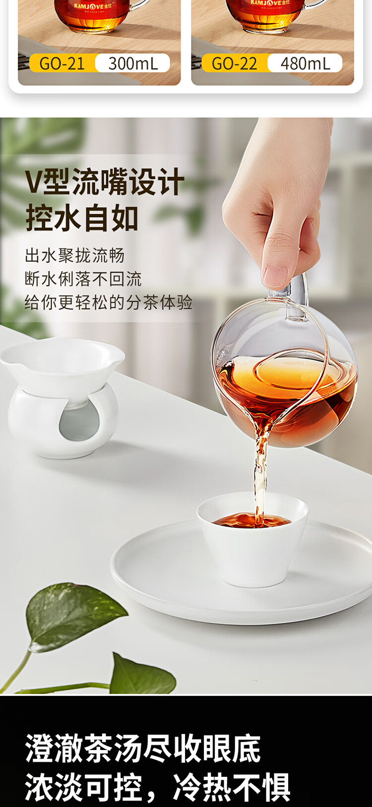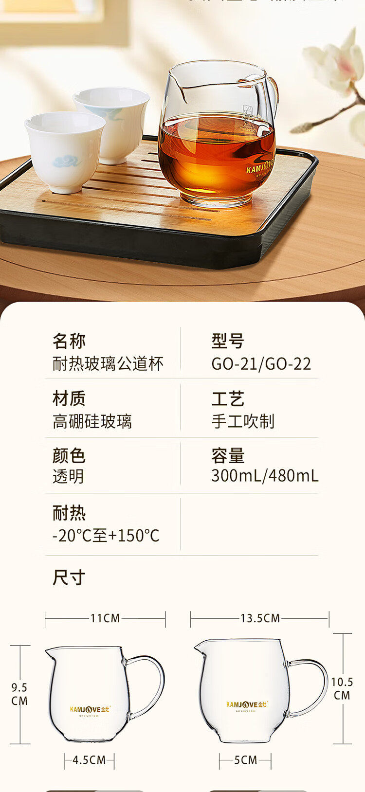 KAMJOVE heat-resistant glass fair cup glass tea divider tea sea fair cup tea divider tea set accessories tea cup GO-21/300ml