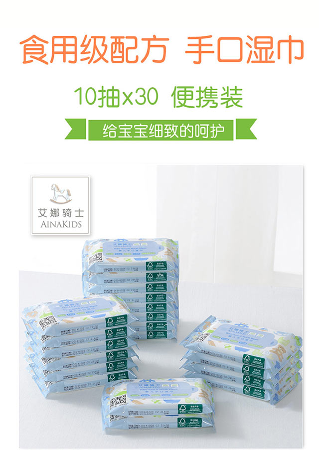 Aina Knight food grade baby wet wipes baby wipes hand and mouth 10 pumps * 30 packs