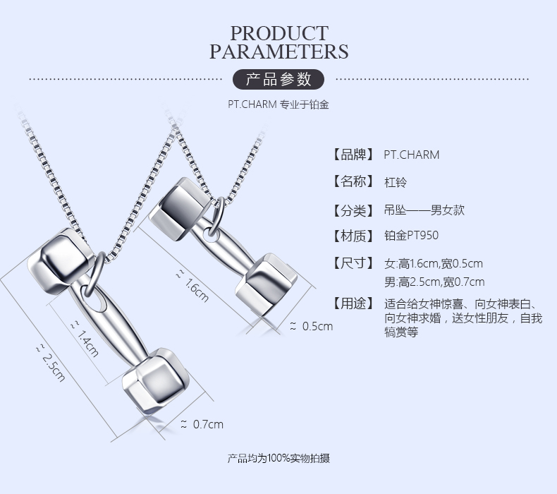Pt.Charm Platinum Pendant Barbell Necklace pt950 Platinum Necklace Couple Personalized Dumbbell Pendant Valentine's Day Gift Confession Customized Men's 14.8-14.9g