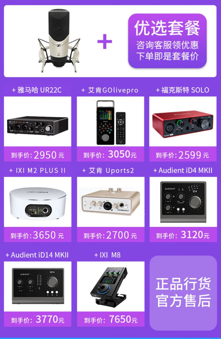 Sennheiser (Sennheiser) genuine national line Sennheiser MK4 condenser microphone microphone mobile phone karaoke live sound card set recording radio dubbing audiobook novel anchor professional equipment MK4 official standard genuine consultation coupon standard