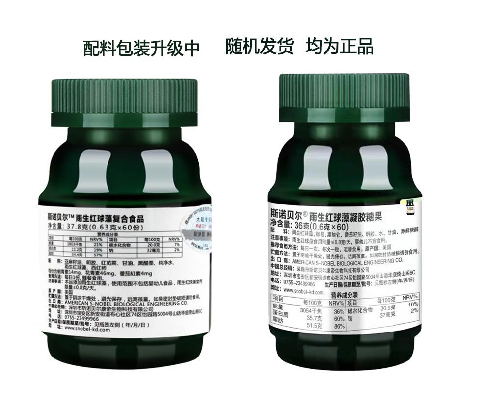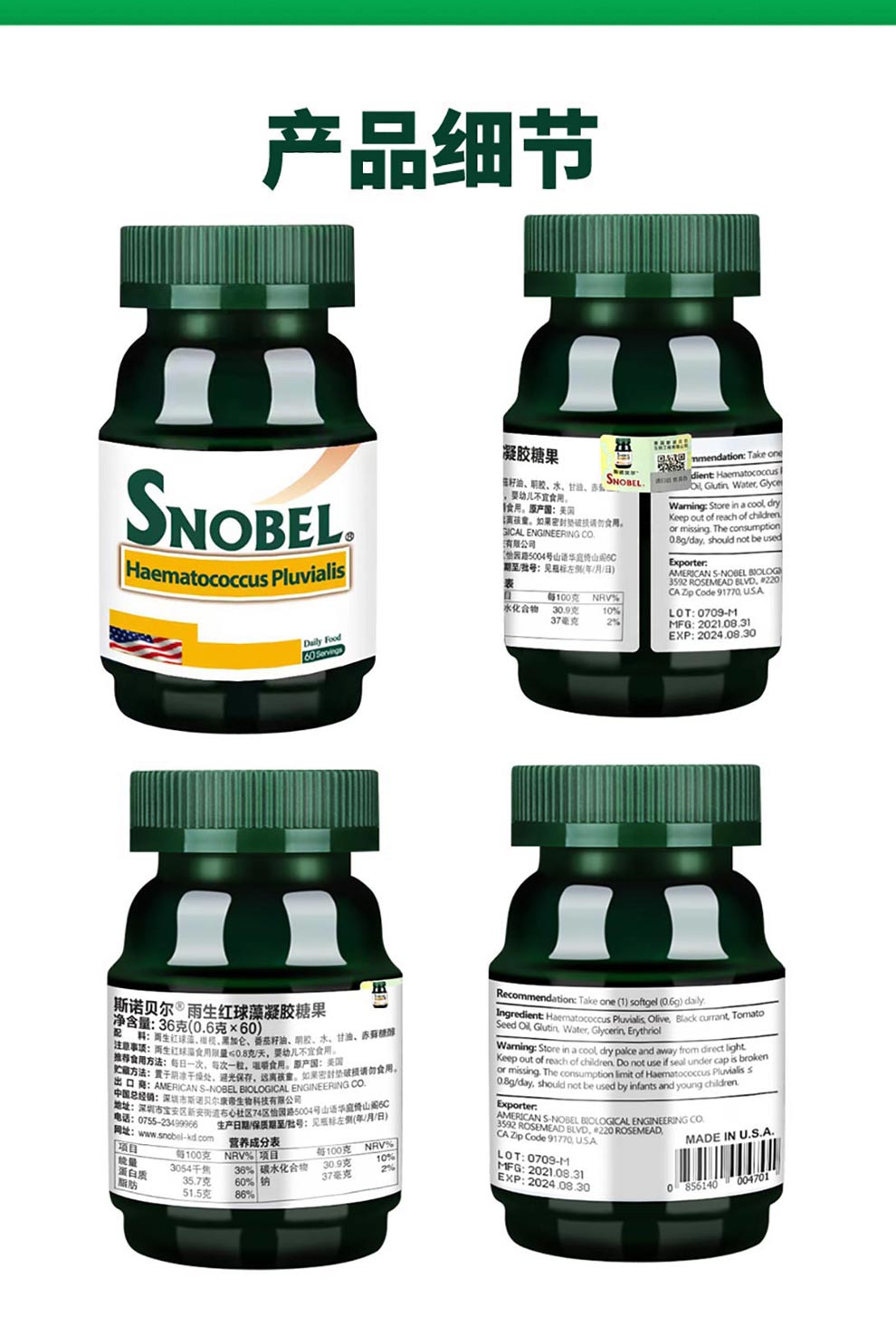 SNOBEL Astaxanthin Soft Capsules imported from the United States with high content Haematococcus pluvialis 0.6g*60 capsules/bottle 1 bottle