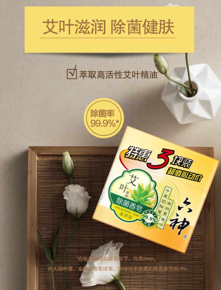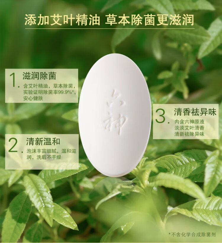 Liushen family pack of 3 pieces, mugwort leaf moisturizing soap 125g*3 (face soap, old and new soap styles are randomly distributed)