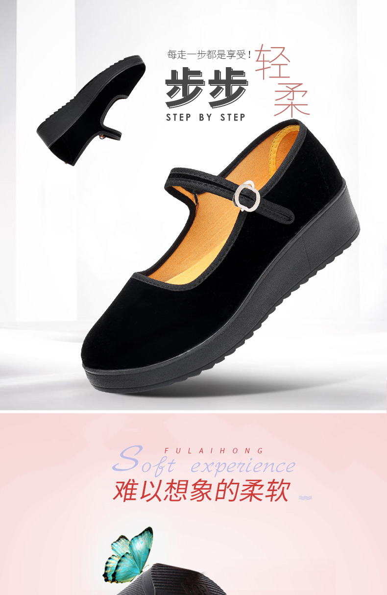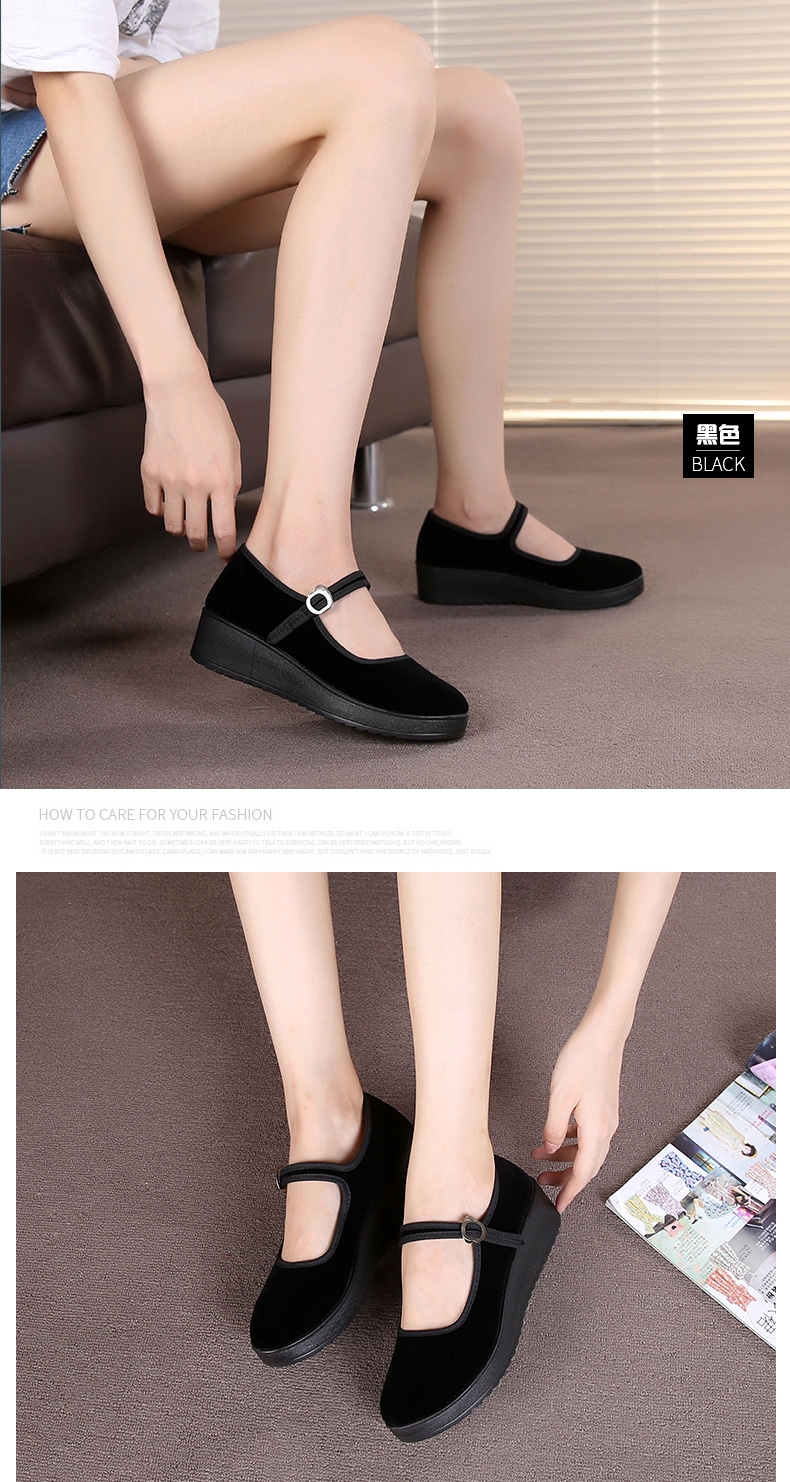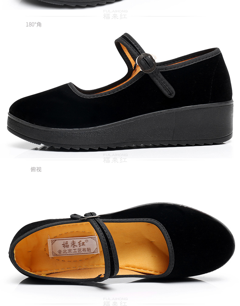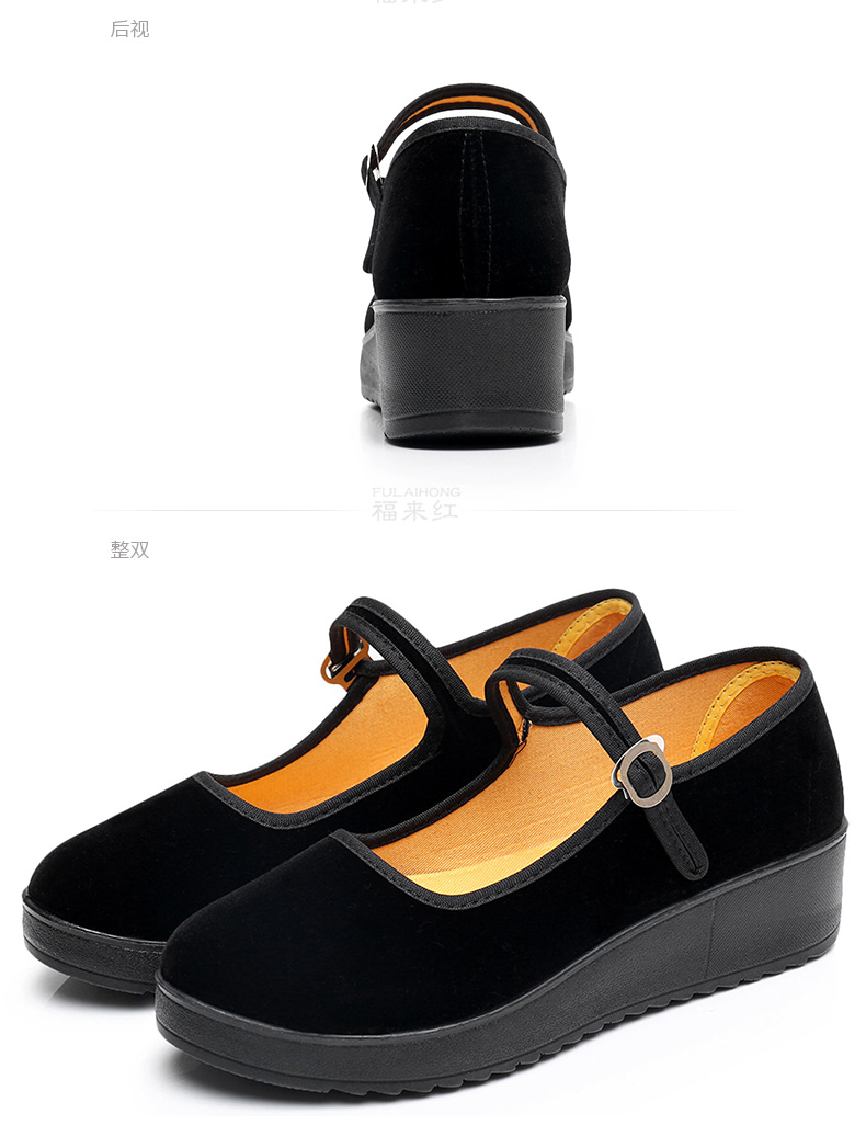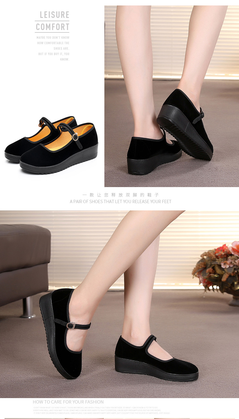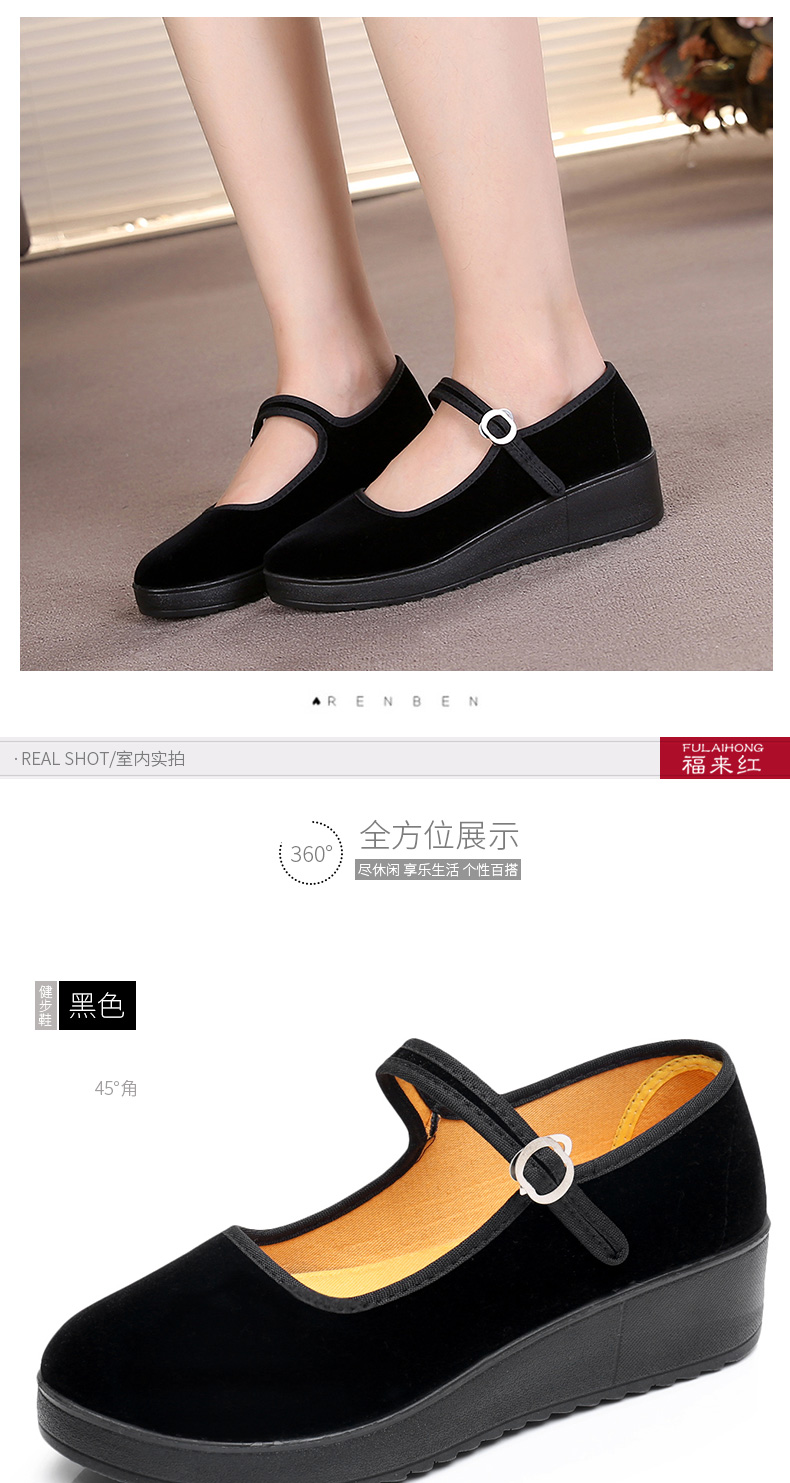 Fulai red old Beijing cloth shoes women's shoes thick sole black wedge heel work shoes waterproof platform women's single shoes hotel non-slip cleaning shoes 316 black 37