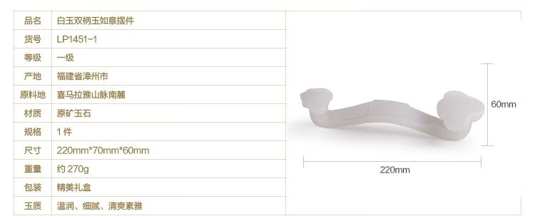 Tianxia Jade Family Jade Auspicious Ruyi Decoration Home Living Room Office Decoration Housewarming Elders Teacher's Day Gift Auspicious Ruyi (Double-headed Ruyi)