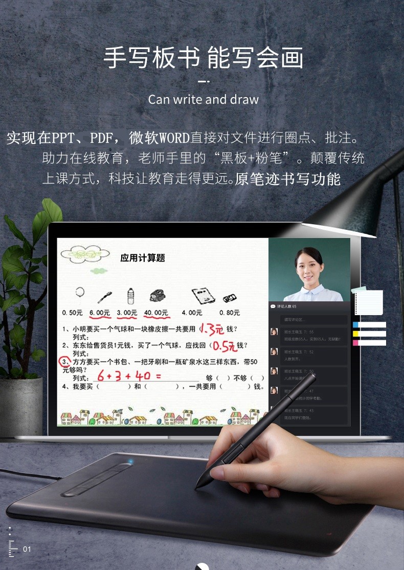 Hanvon Hanvon handwriting tablet drawing tablet Kuxue 2.0 formula recognition tablet large screen online course online teaching computer hand-drawing tablet Kuxue (multimedia education version 312.5*209.5mm)
