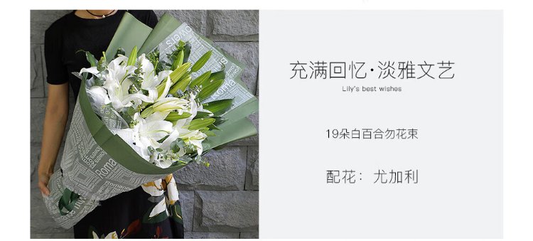 Come and receive Valentine's Day flower delivery. Roses and lilies are sent to your girlfriend and wife as a birthday gift to express your love. Delivered nationwide in the same city. 19 white lilies.