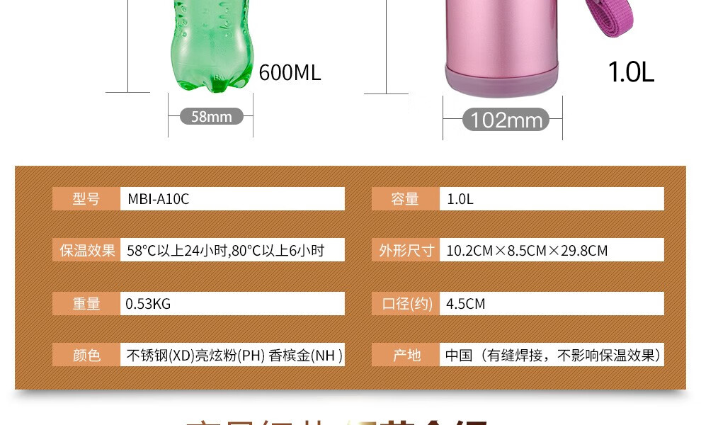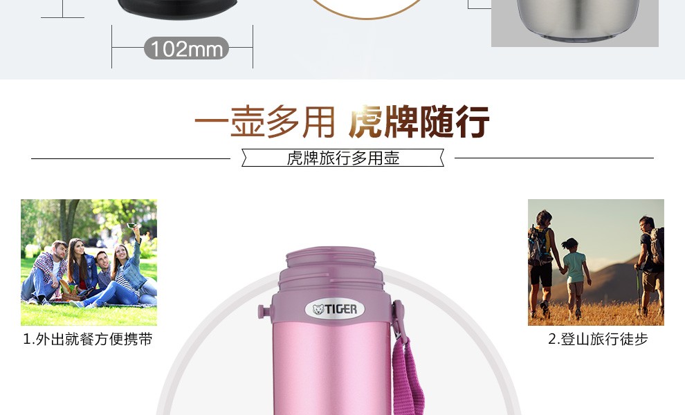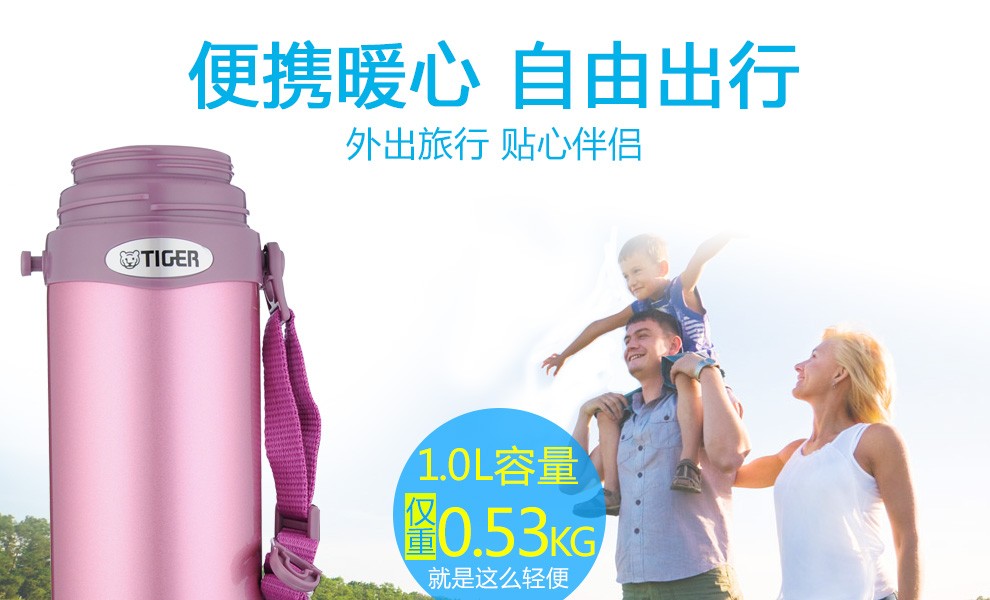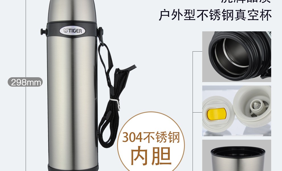 TIGER Outdoor Insulated Cup Stainless Steel Vacuum Cooling Cup Travel Sports Bottle MBI-A10C 1.0L Champagne Gold NH 1000ml