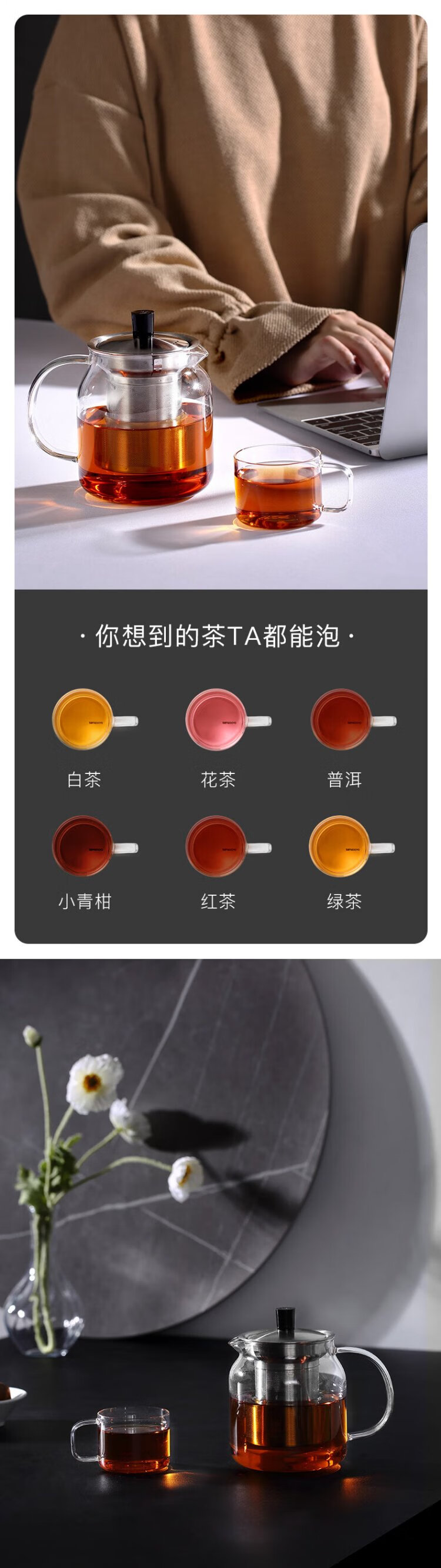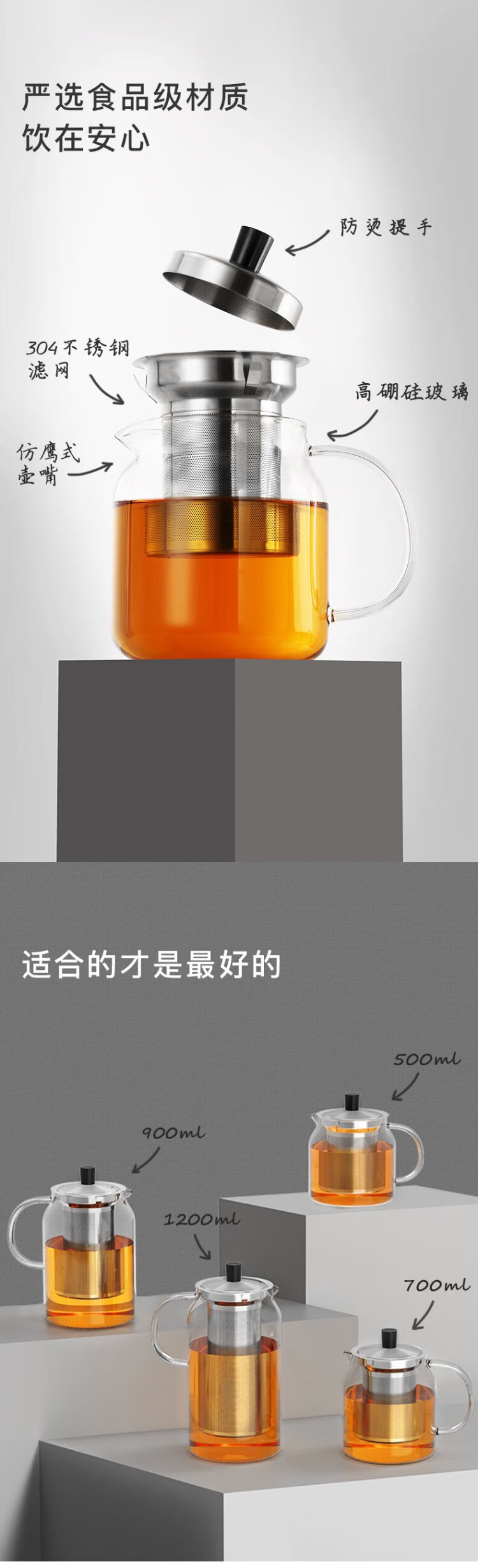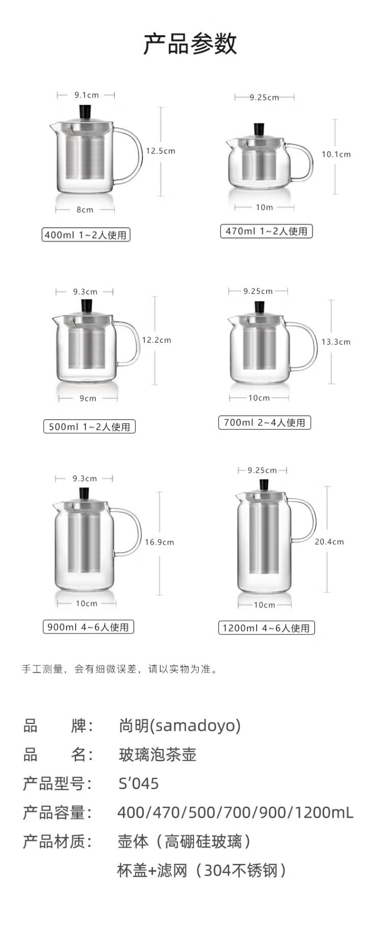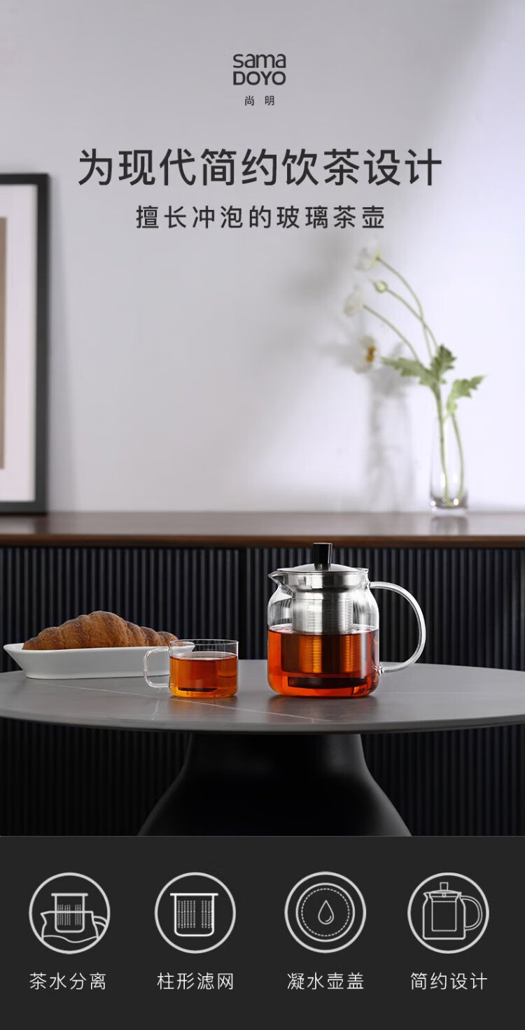 SAMADOYO heat-resistant glass teapot, teapot, tea water separation and filtration, household large-capacity teapot, thickened tea set, single pot 700ml