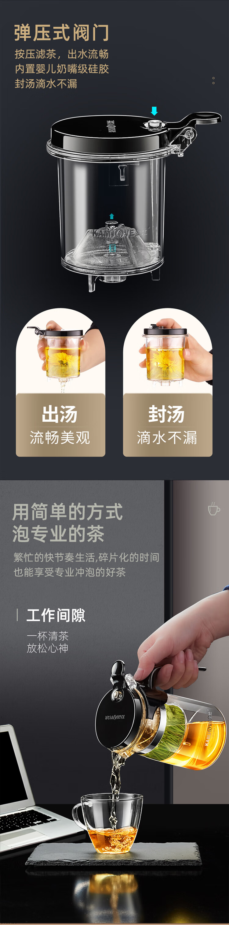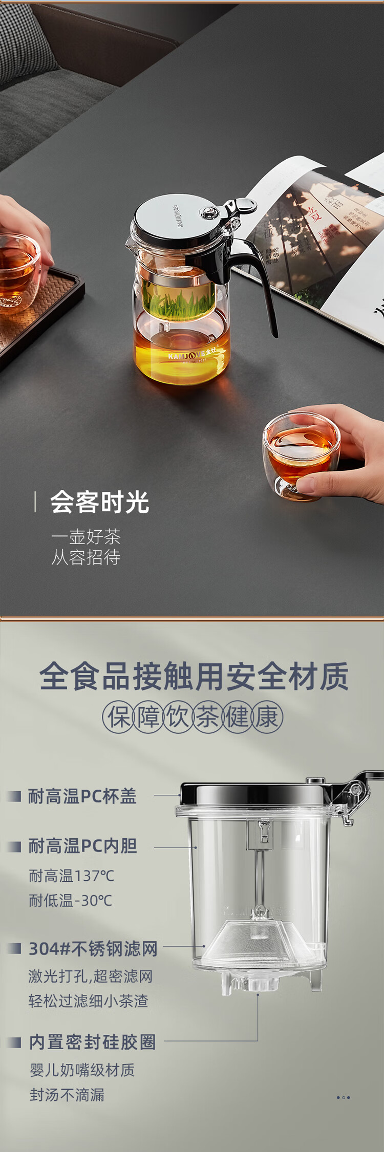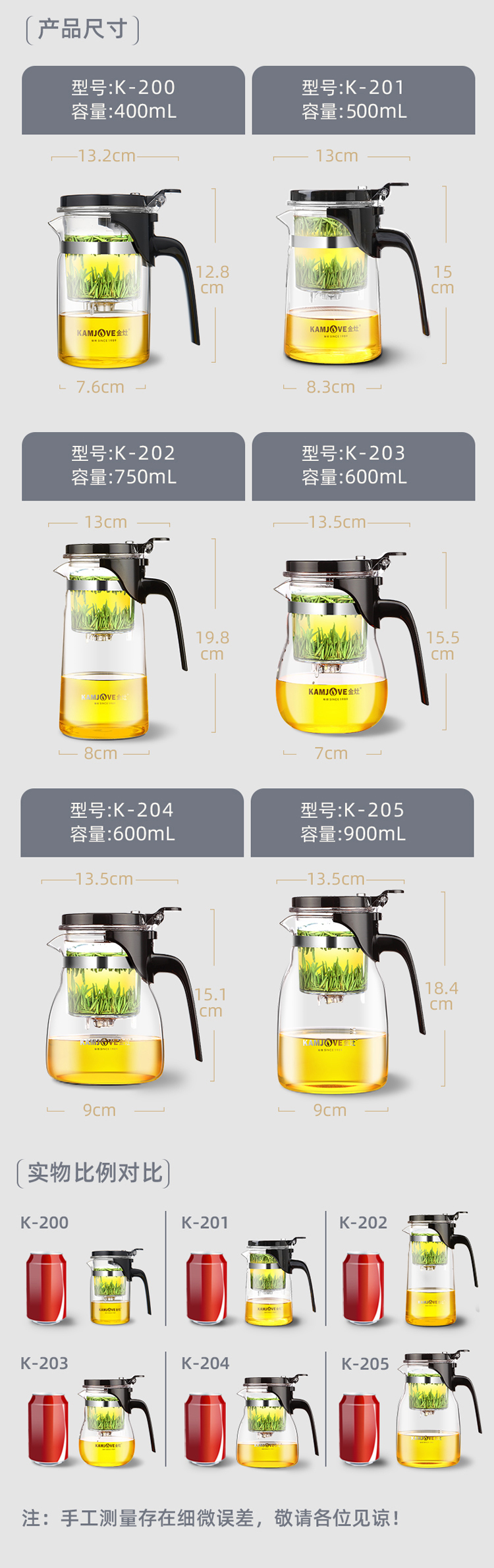 KAMJOVE glass teapot tea water separation elegant cup teapot filter flower teapot tea ceremony cup tea set teapot K-201/500ml