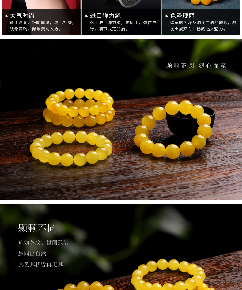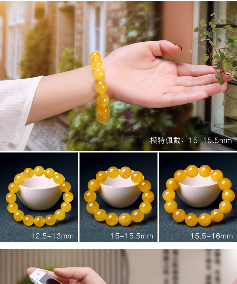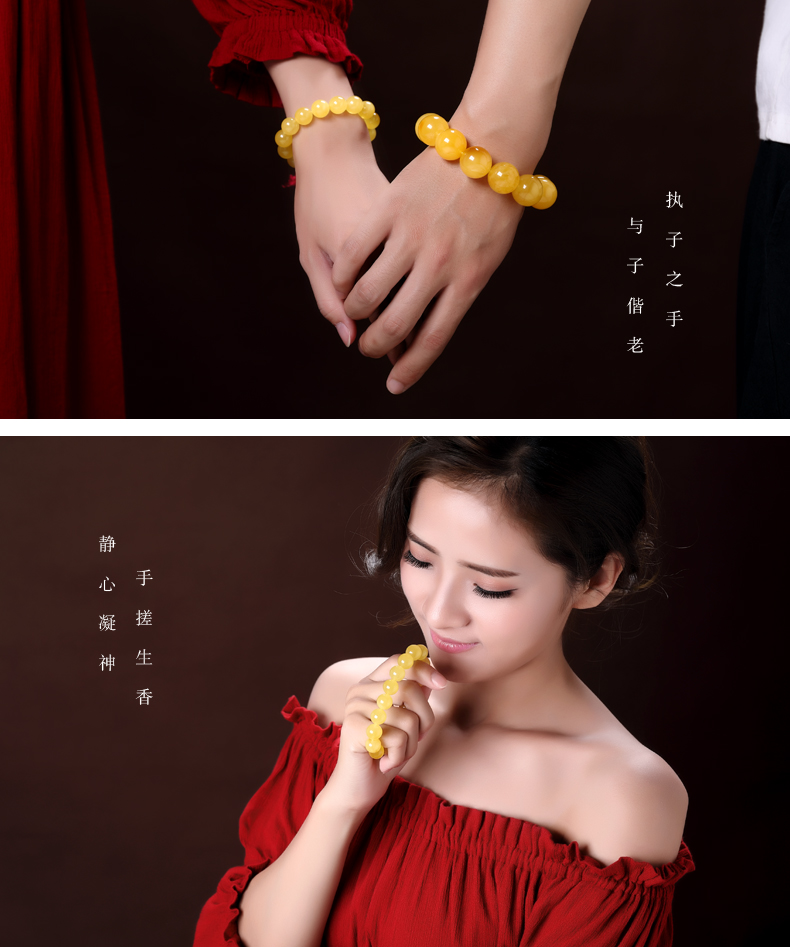 OUCERNY Beeswax Bracelet Natural Amber Raw Stone Unroasted Honey Chicken Butter Yellow Buddha Bead Bracelet Men and Women Style Birthday Gift 7.5-8mm