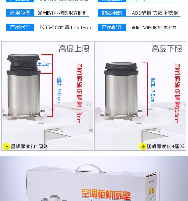 Weishilang cylindrical cabinet base living room vertical round air conditioner cabinet heightening bracket suitable for Haier Hisense Kelon Chigo TCL Greoux Xiaomi Hualing air conditioner bracket gold (length and width 36-50cm, height 11.5-13cm)