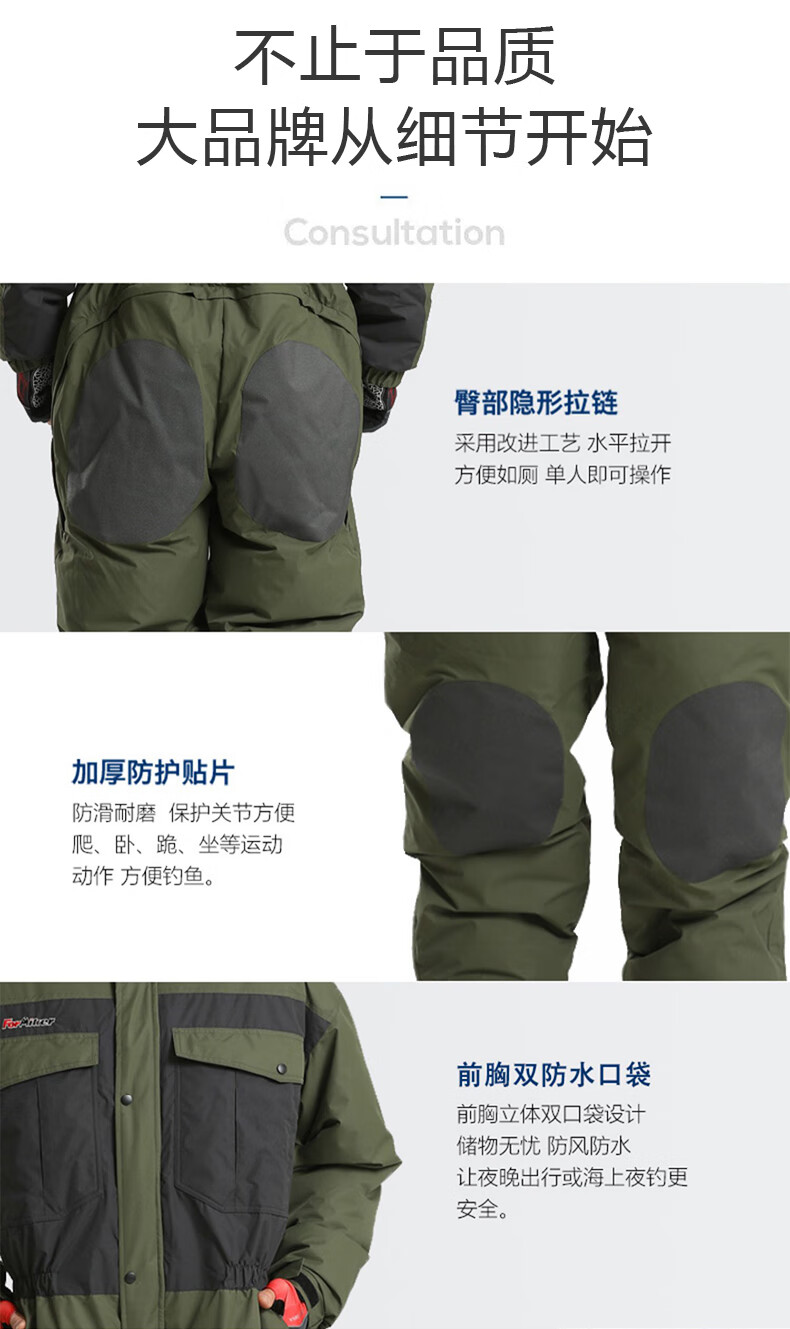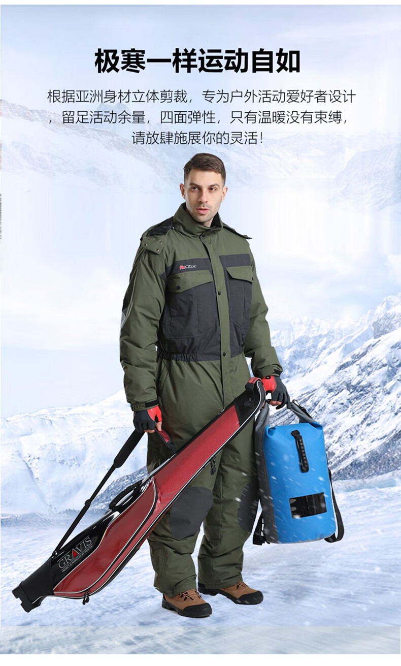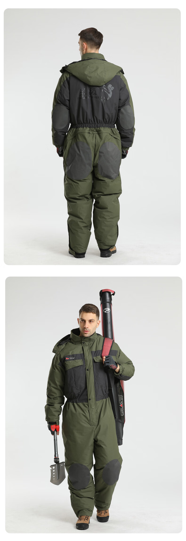 Wind Hunter Winter Outdoor Fishing Suit Down Windproof Jumpsuit Thickened Ice Fishing Warm Cotton Suit Sea Fishing Waterproof Coldproof Suit Military Green Meter Level Down Jumpsuit 2XL