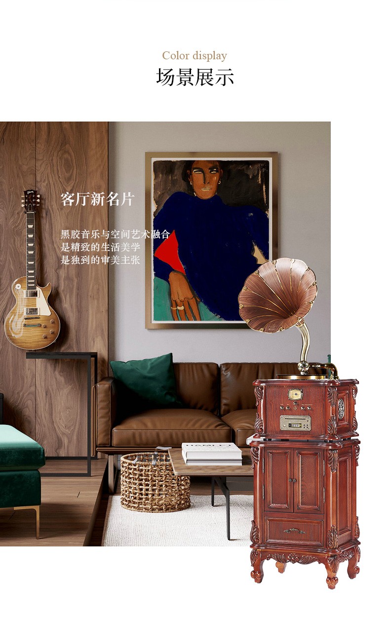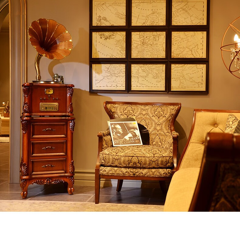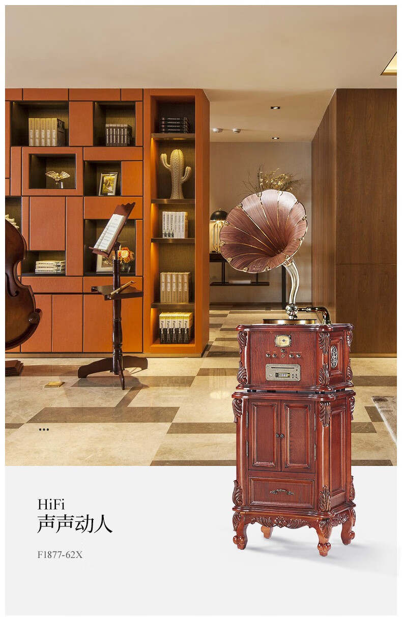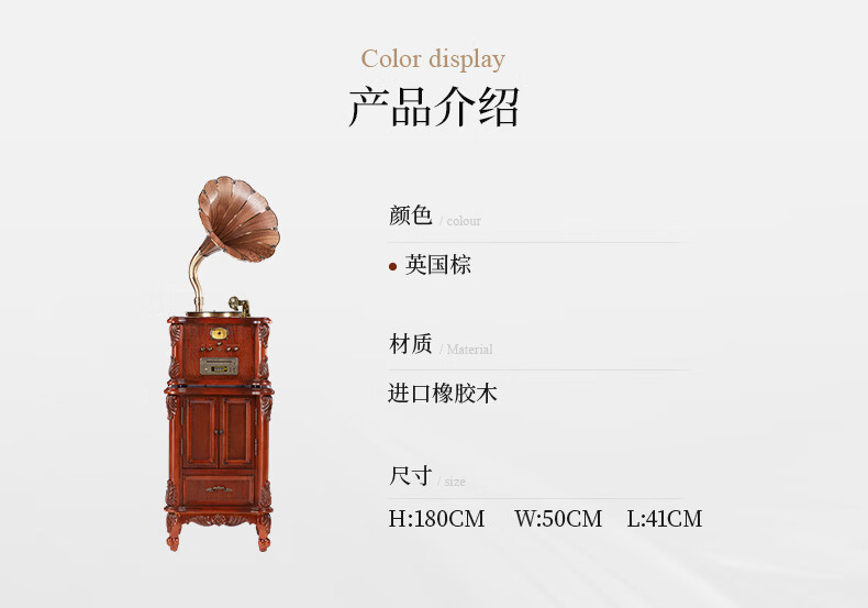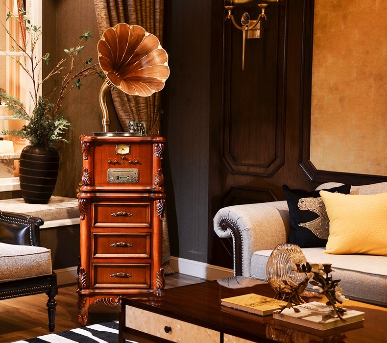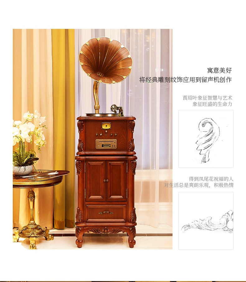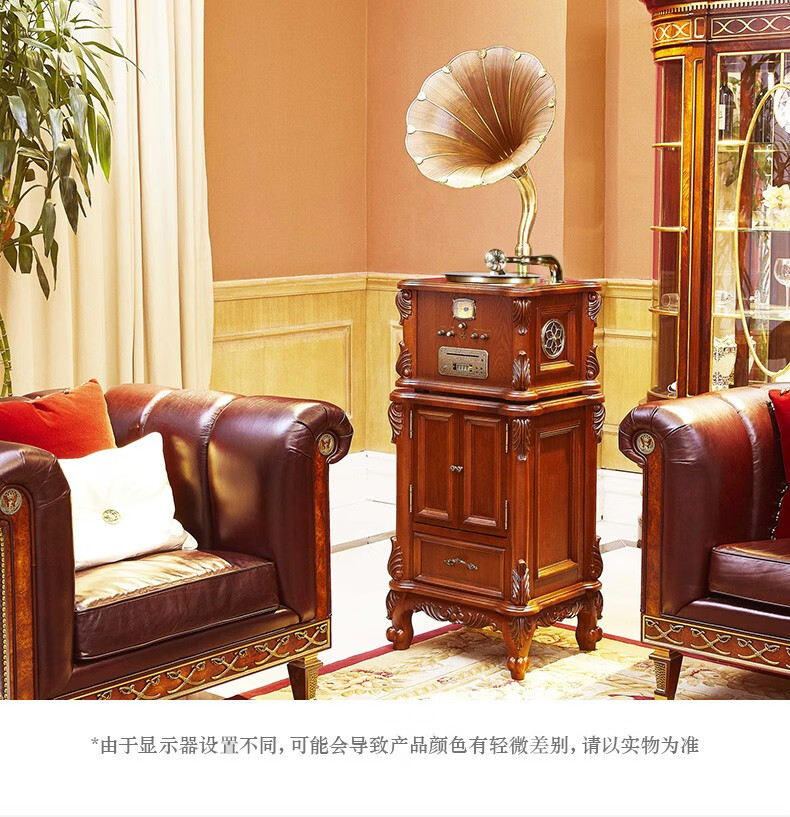 Vannessy European retro antique 62X gramophone vinyl record player old-fashioned record player with CD subwoofer living room Bluetooth audio British brown drawer turbine version (copper horn)