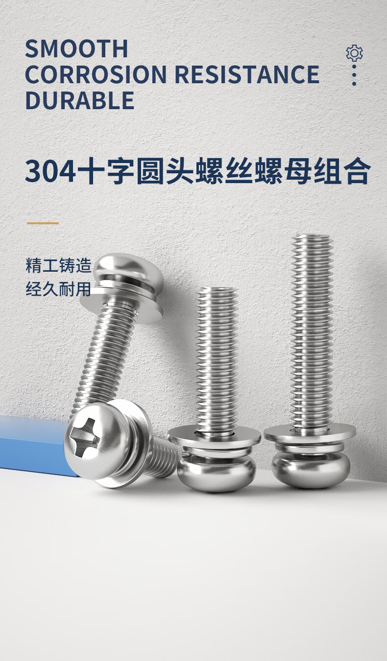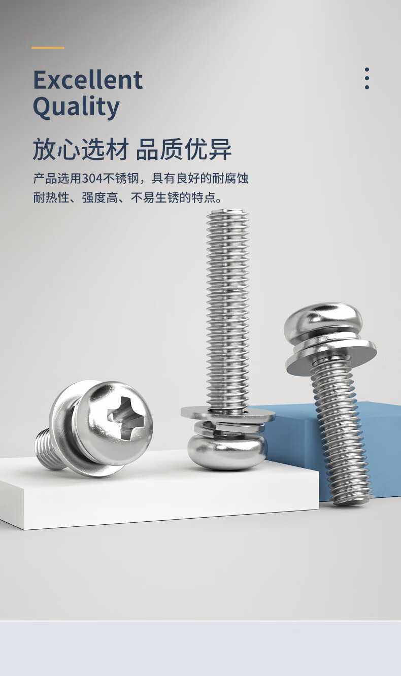 GUWANJI 304 stainless steel cross round head three combination screws pan head with flat washer elastic washer bolt combination M4*12*9 20 pieces