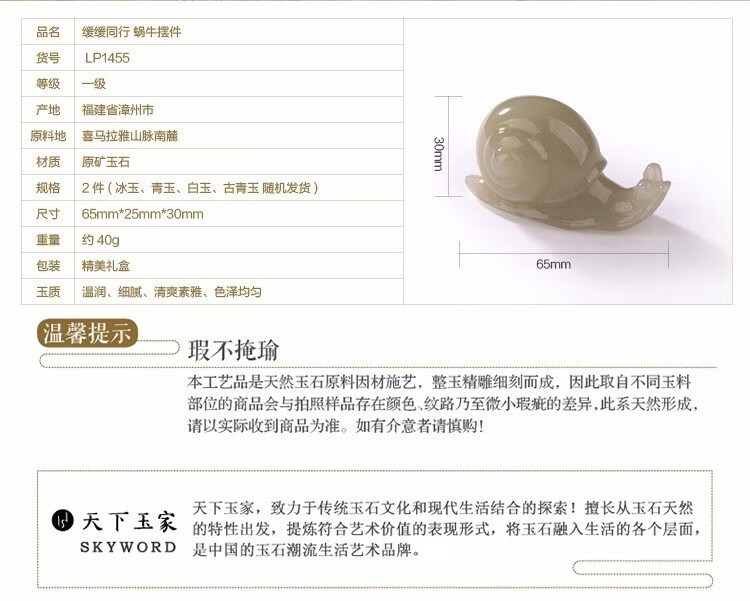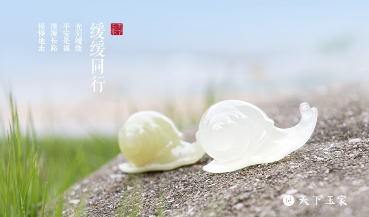 Tianxia Jade Family Jade Snails Pair Slowly Walking Together Creative Ornaments Couple Wedding Birthday Gift Accompanying You White Bingyu Pair