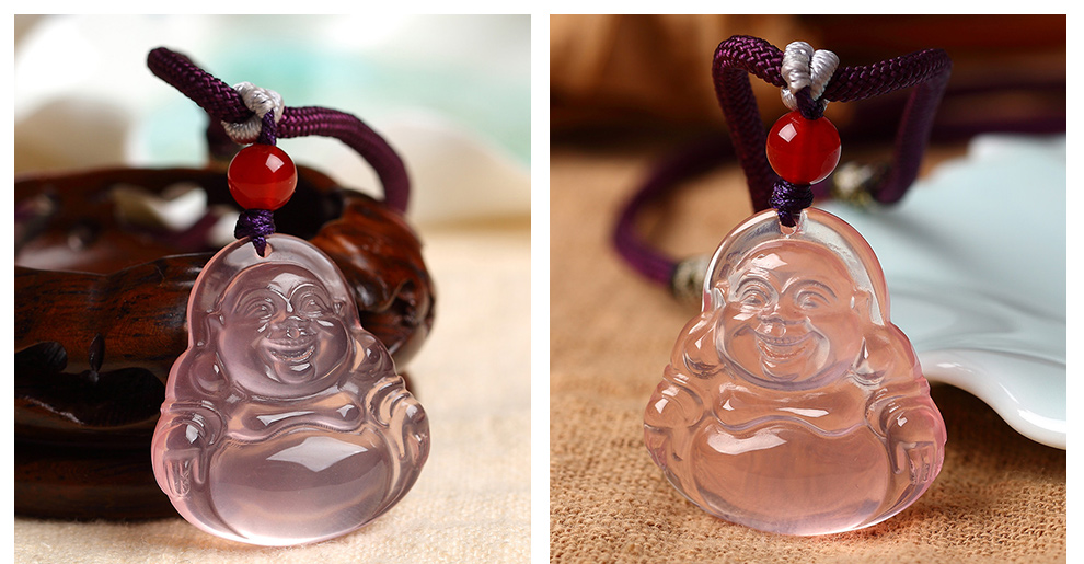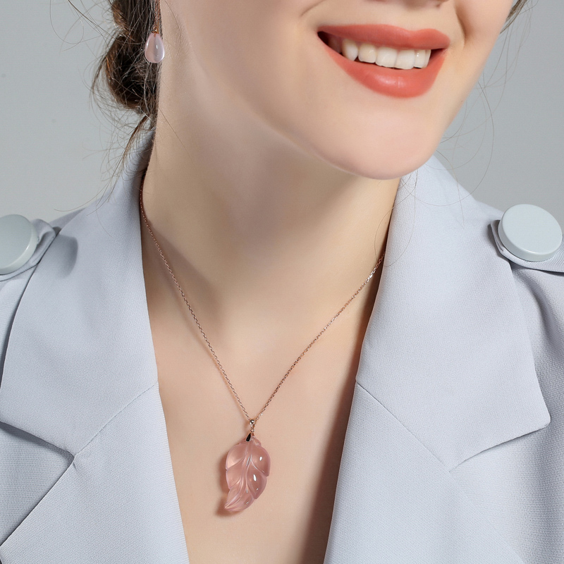 Jinshang jewelry necklace for women 18K gold hibiscus stone pendant rose gold peace Buddha clavicle chain 18K gold leaf pendant