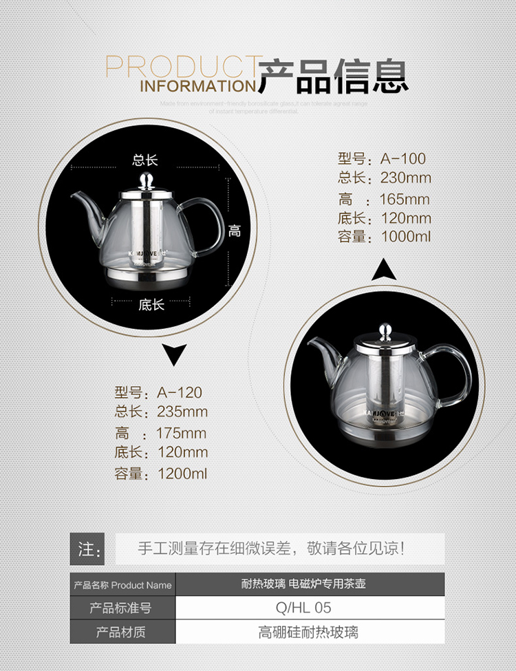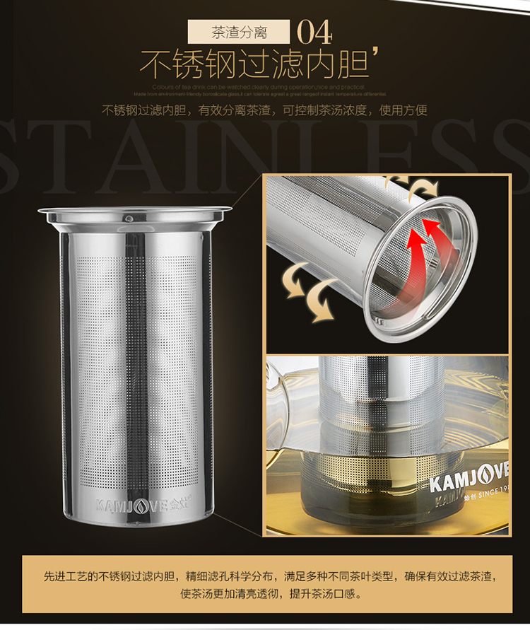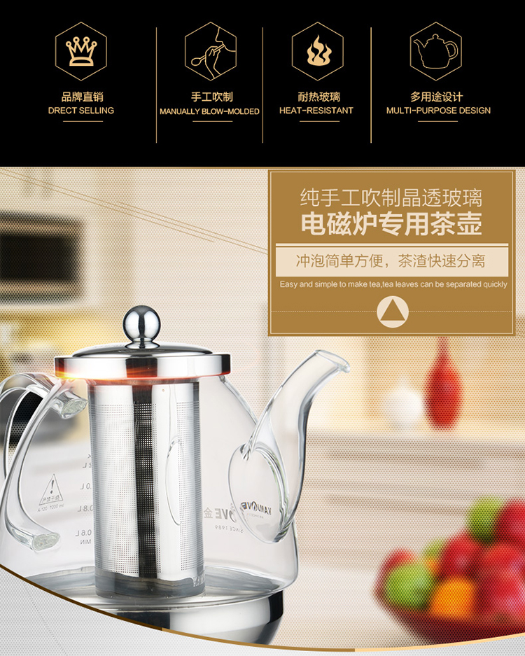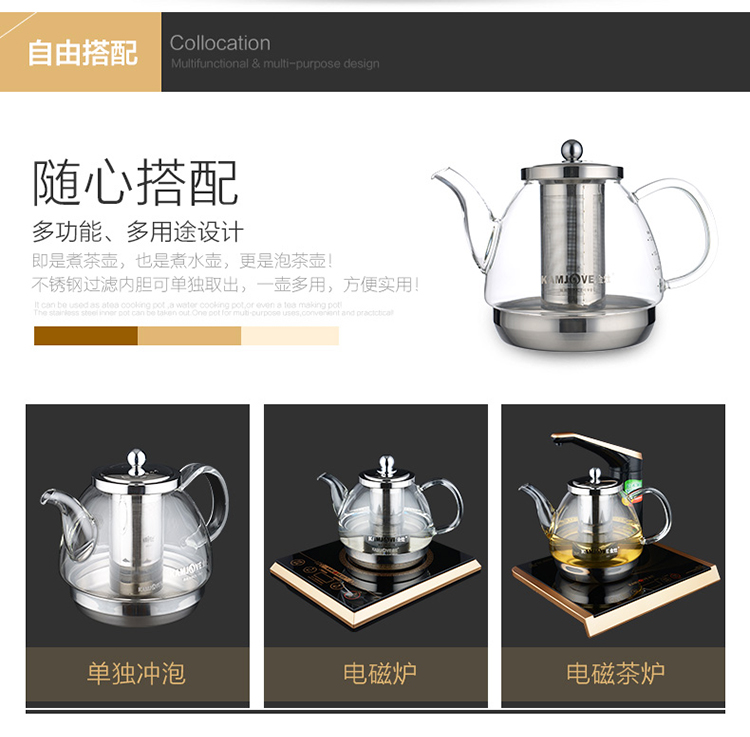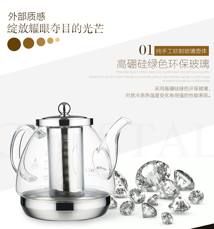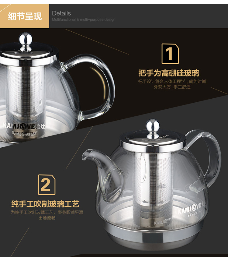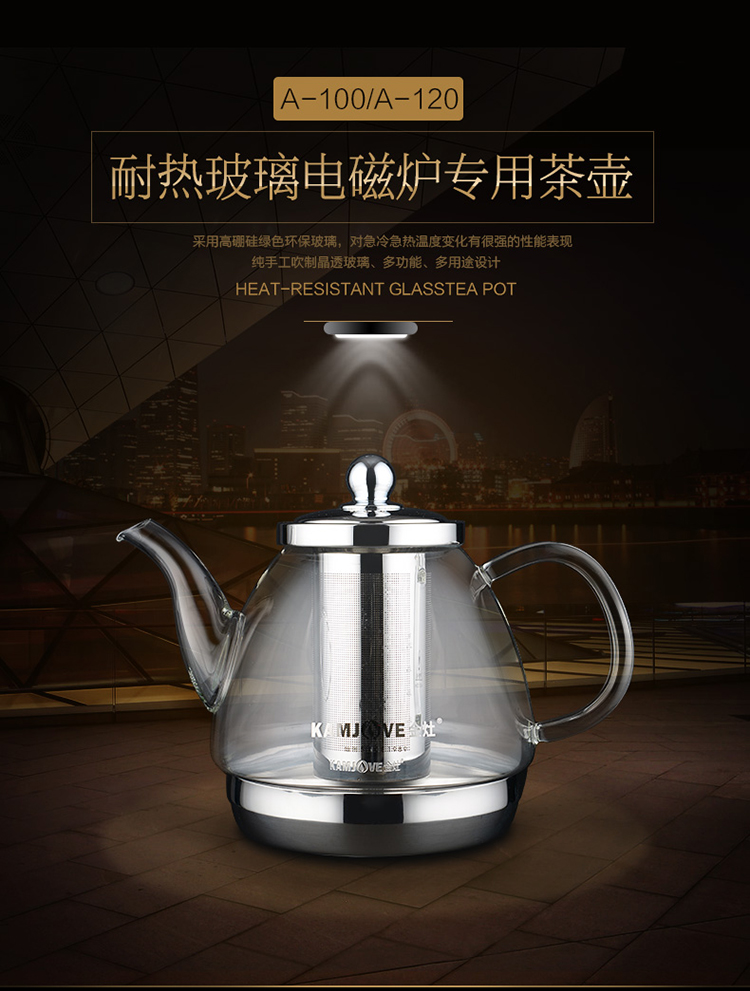 KAMJOVE heat-resistant glass teapot stainless steel filter flower teapot electric ceramic stove teapot induction cooker special kettle A120/1.2L