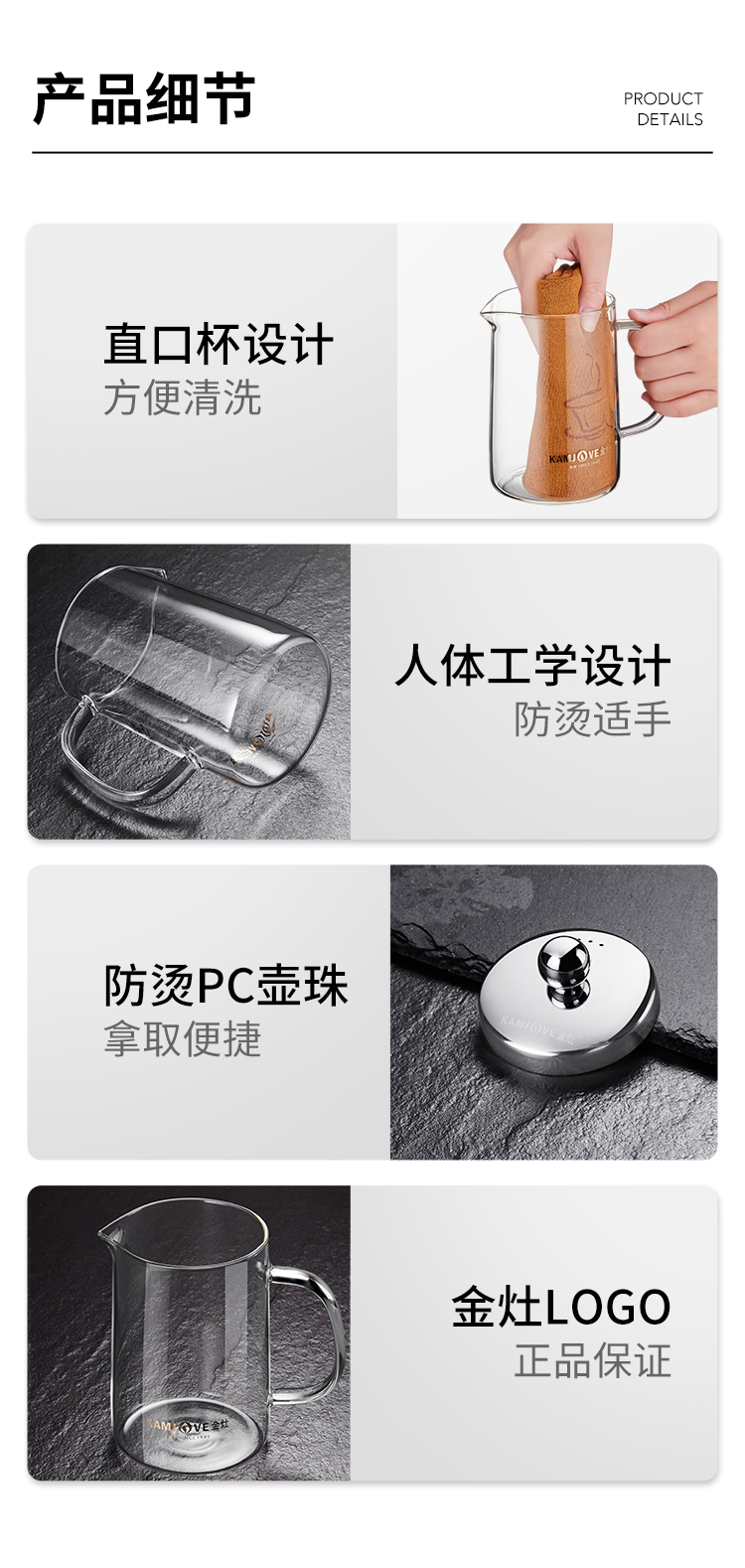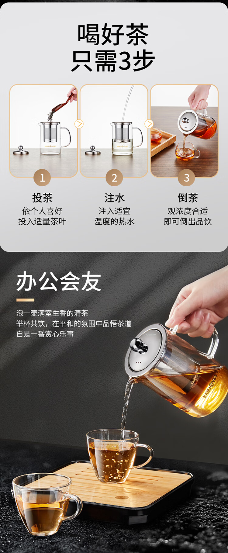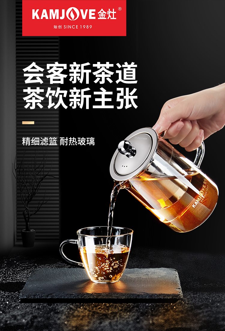 KAMJOVE teapot elegant cup Kung Fu teapot tea water separation glass teapot office tea set filter flower teapot A-01 350ml