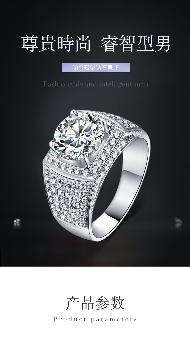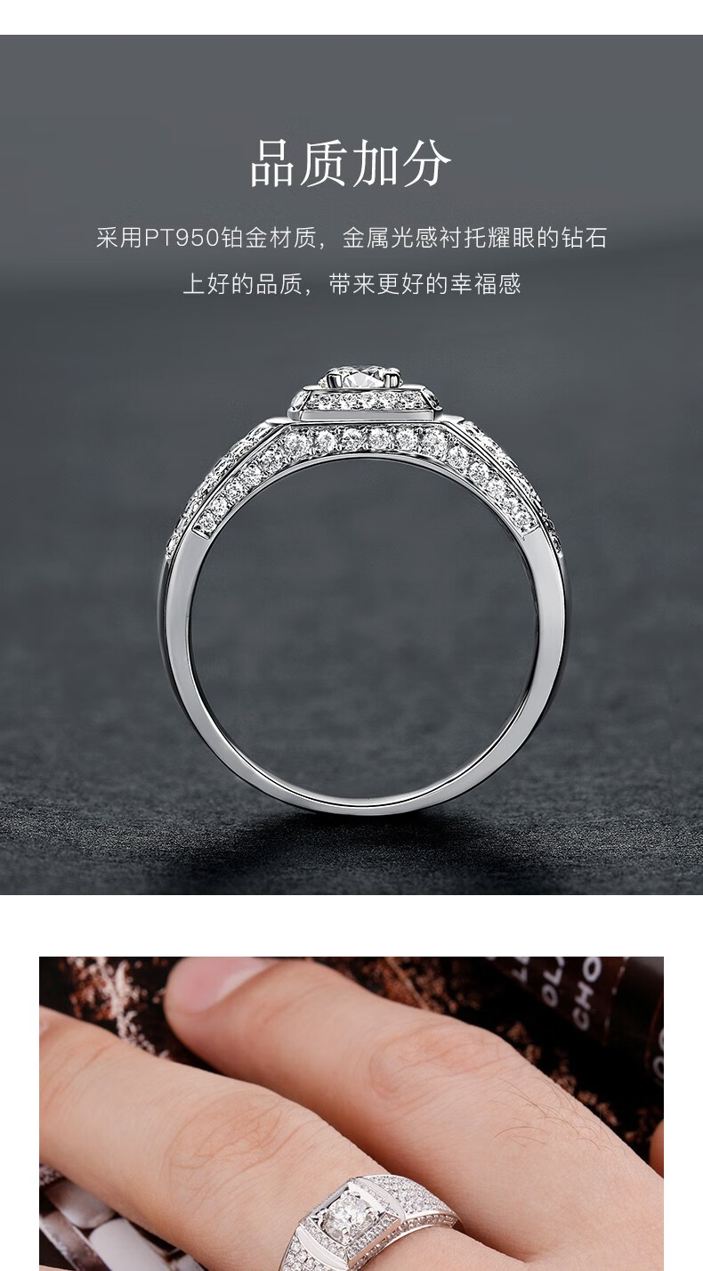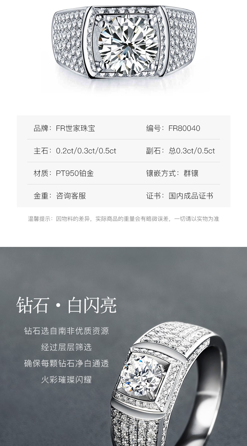 FR platinum men's ring diamond ring men's diamond ring luxury group setting PT950 platinum ring diamond ring 520 gift recommended main diamond 30 points + secondary diamond 50 points IJ color