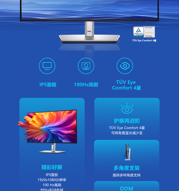 Dell (DELL) P2425H 23.8-inch monitor 1080P IPS screen 100HZ hardware-level anti-blue light rotation and lifting micro frame supports wall-mounted P2422H upgraded version P2425H (VGA+HDMI+DP) interface