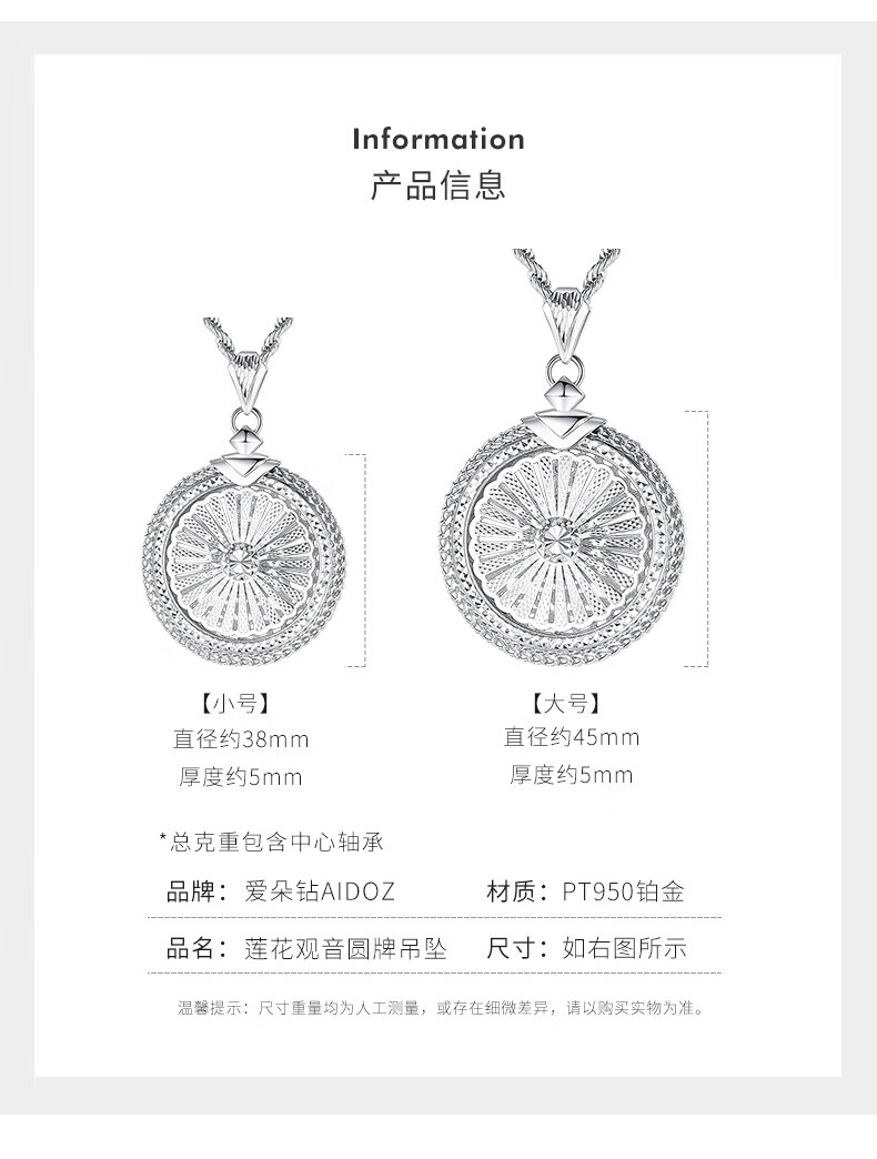 Aido Diamond Platinum Shi Lai Guanyin Pendant Men's PT950 Platinum Rotatable Large Hangtag Large Version Weight 37-39g + Certificate + With Leather Strap