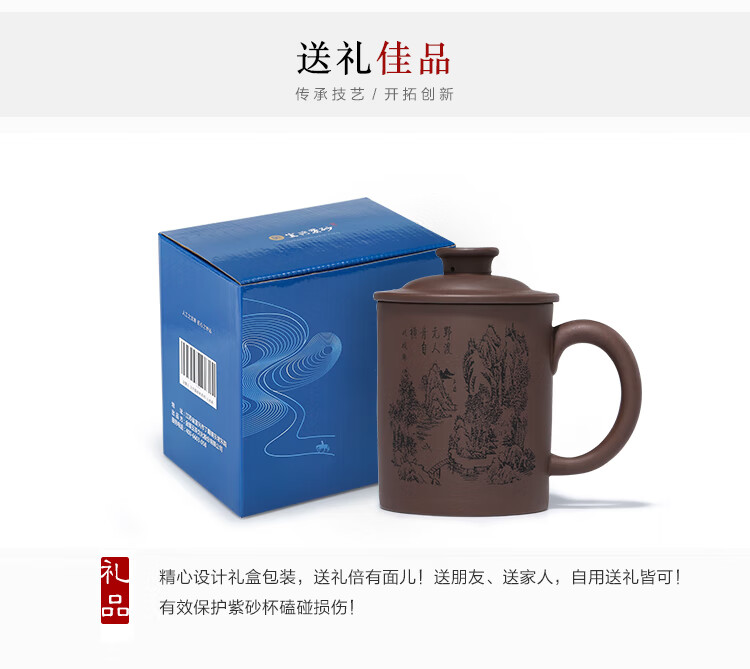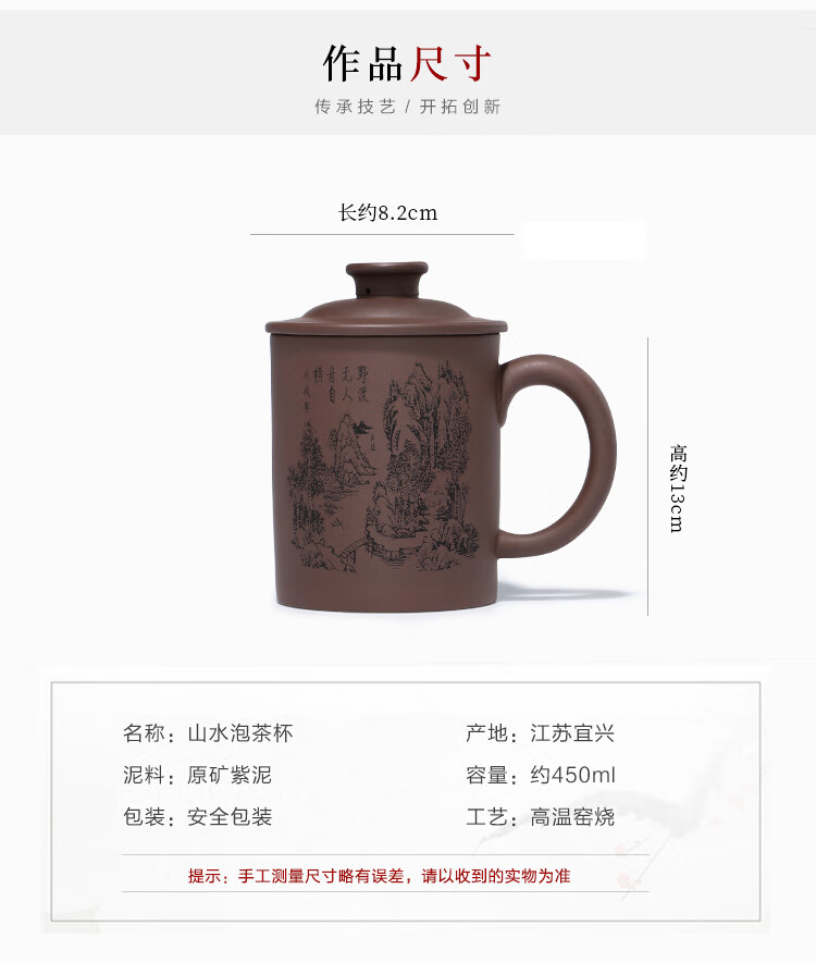 Gold inlaid jade Yixing purple clay cup original ore purple clay carved large capacity water cup tea set office cup landscape tea cup 450ml