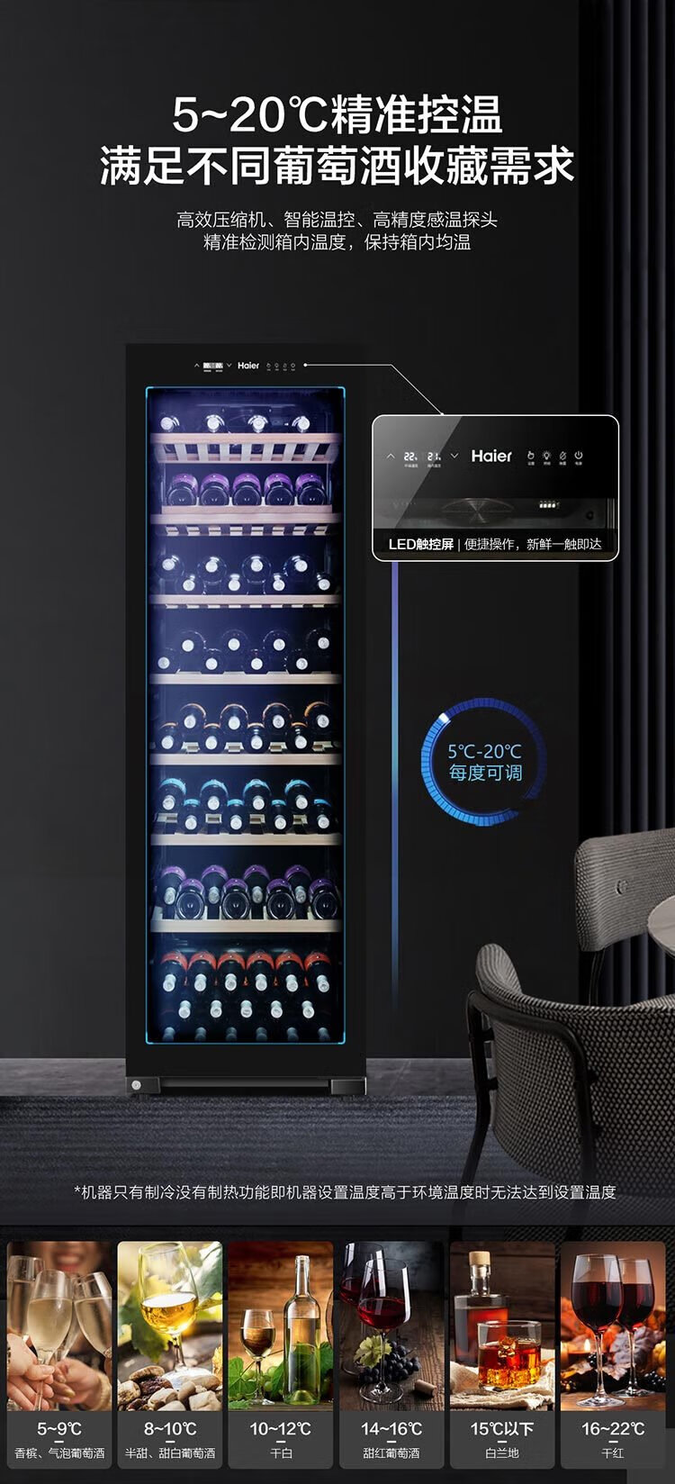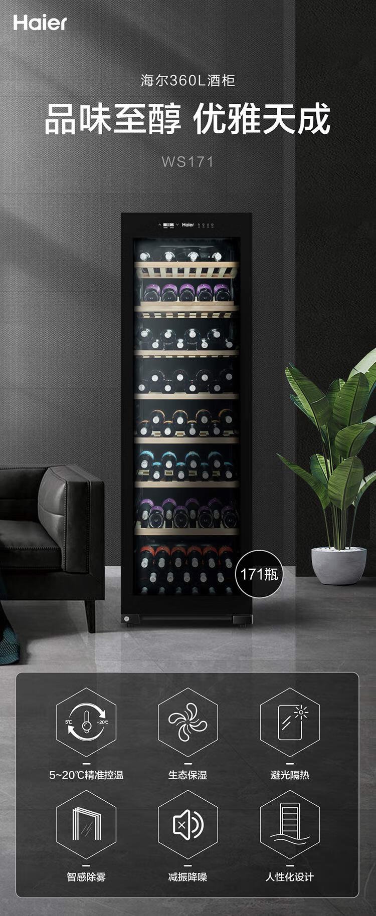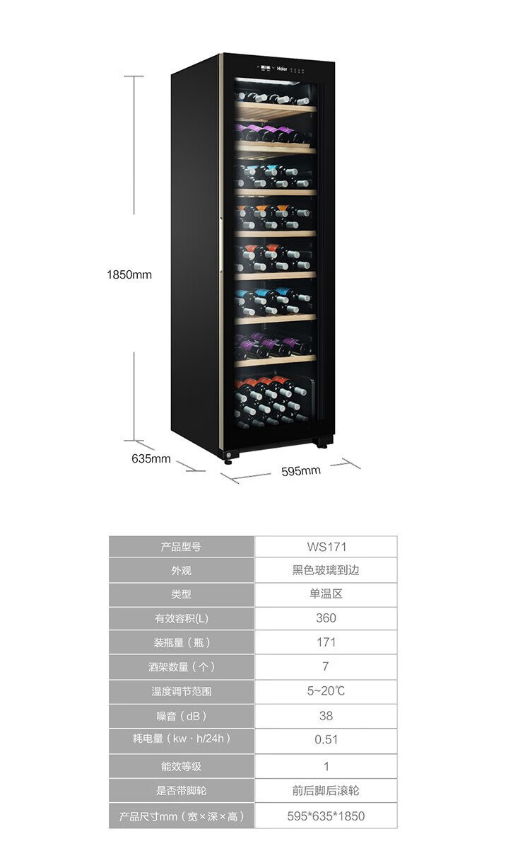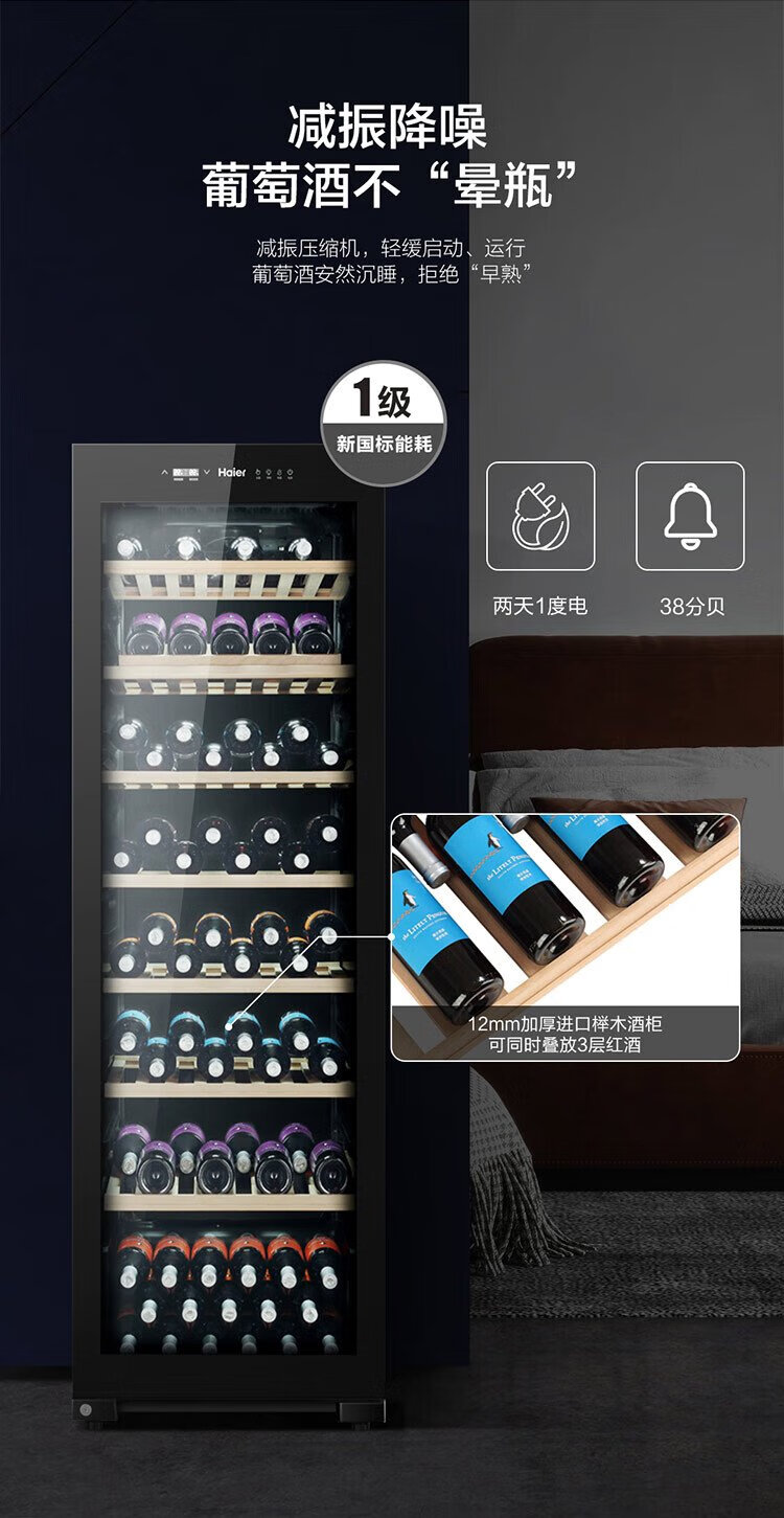 Haier 360 liter 171 bottles first-class energy-saving home red wine cabinet living room office wine refrigeration wine cabinet temperature control moisturizing intelligent temperature control WS171 national subsidy