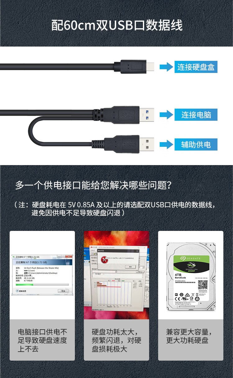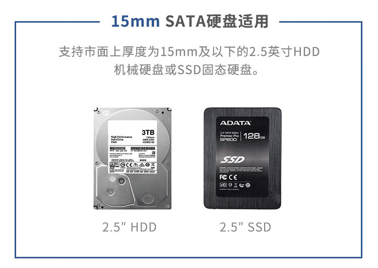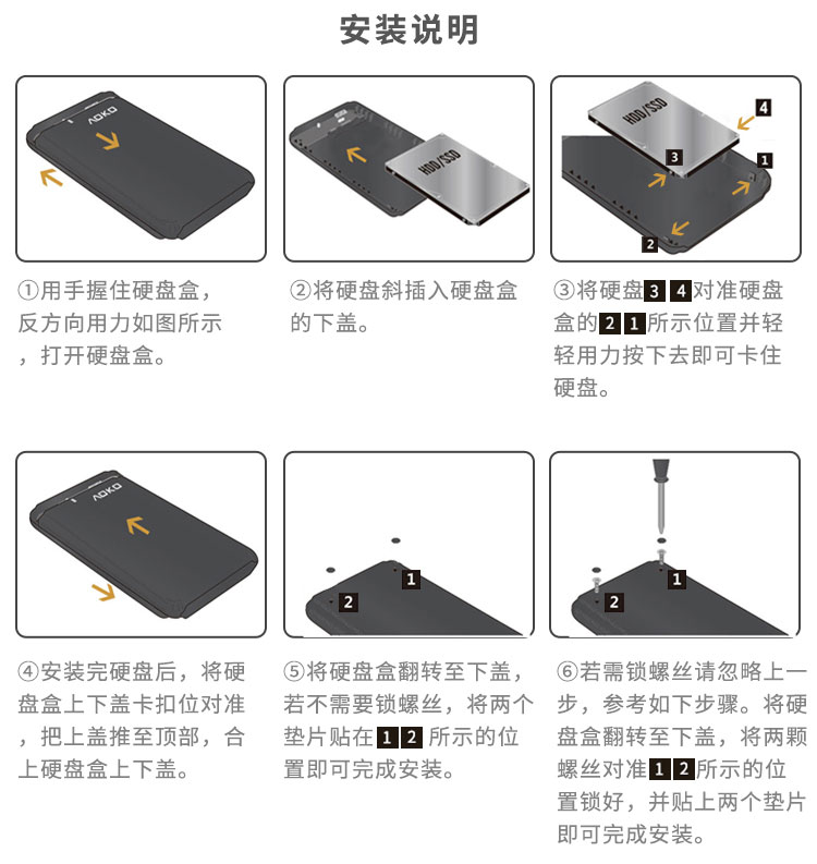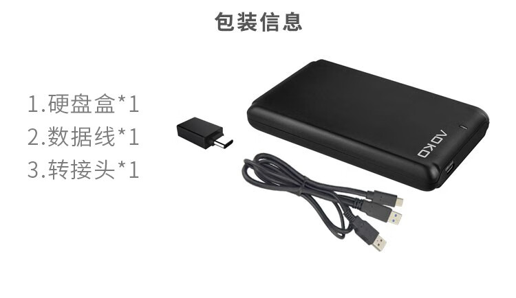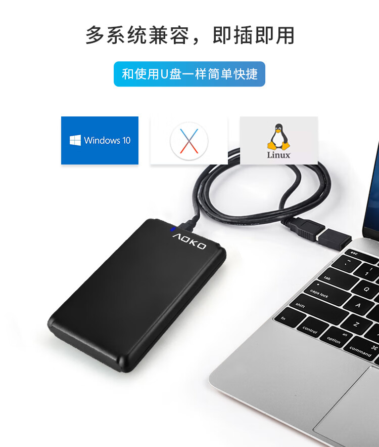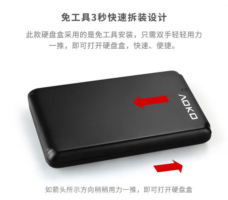 AOKO 2.5-inch Type-C mobile hard drive box 15mm thick external USB3.1 notebook mechanical solid state drive external box supports 15mm thick hard drive A206BK Gen2 speed 15mm thick hard drive box