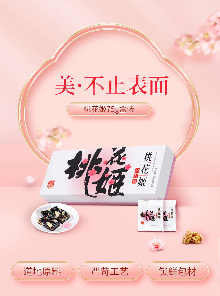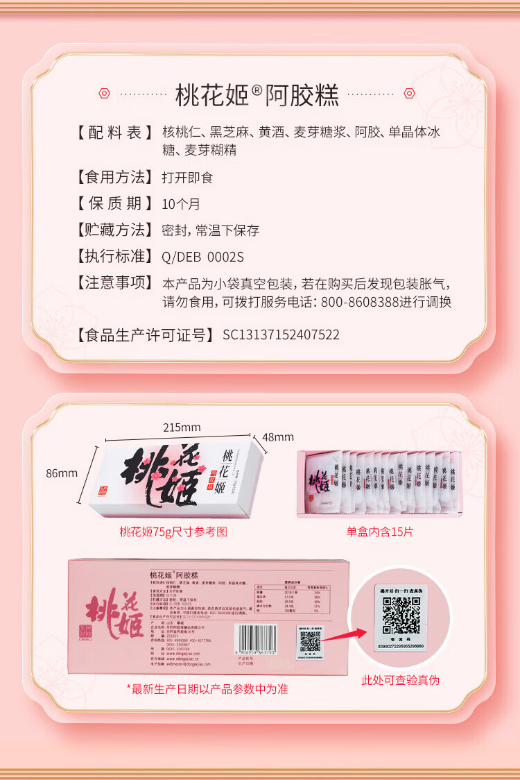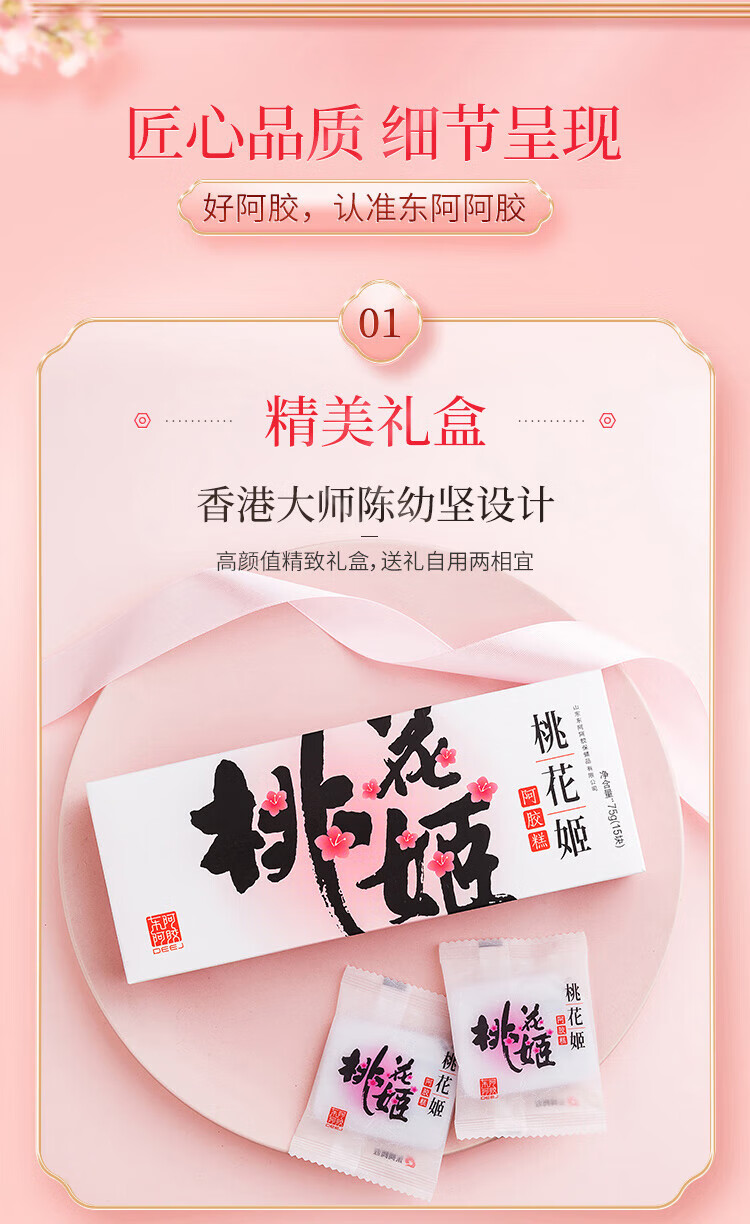 Dong'e donkey-hide gelatin peach blossom Ji donkey-hide gelatin cake 75g boxed ready-to-eat donkey-hide gelatin cake gift box gift box for elders to meet their parents
