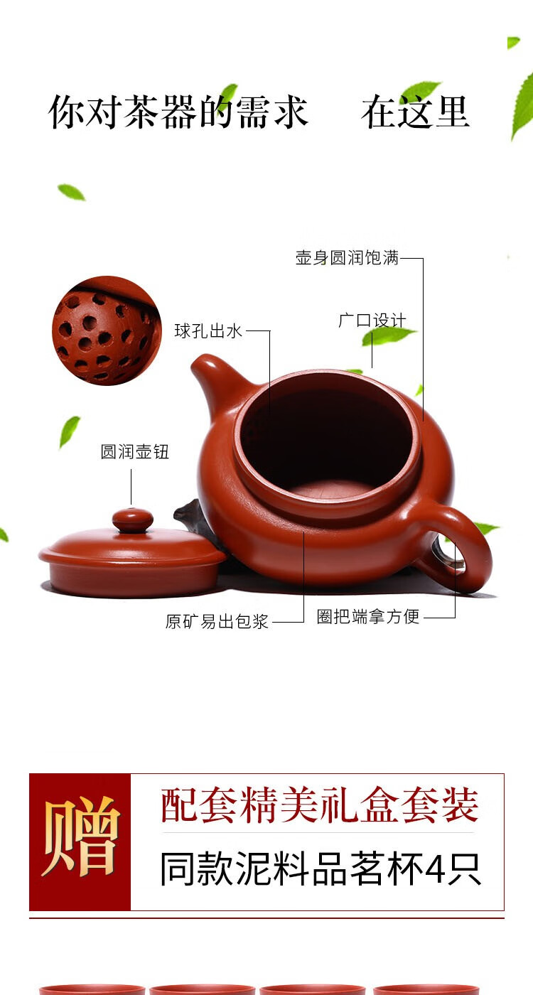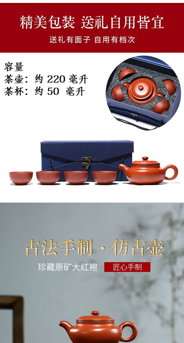 Red Tiepu Yixing purple clay pot Yixing handmade original ore purple clay antique teapot gift box set gift tea set 1 pot 4 cups 220ml purple clay antique teapot gift box set