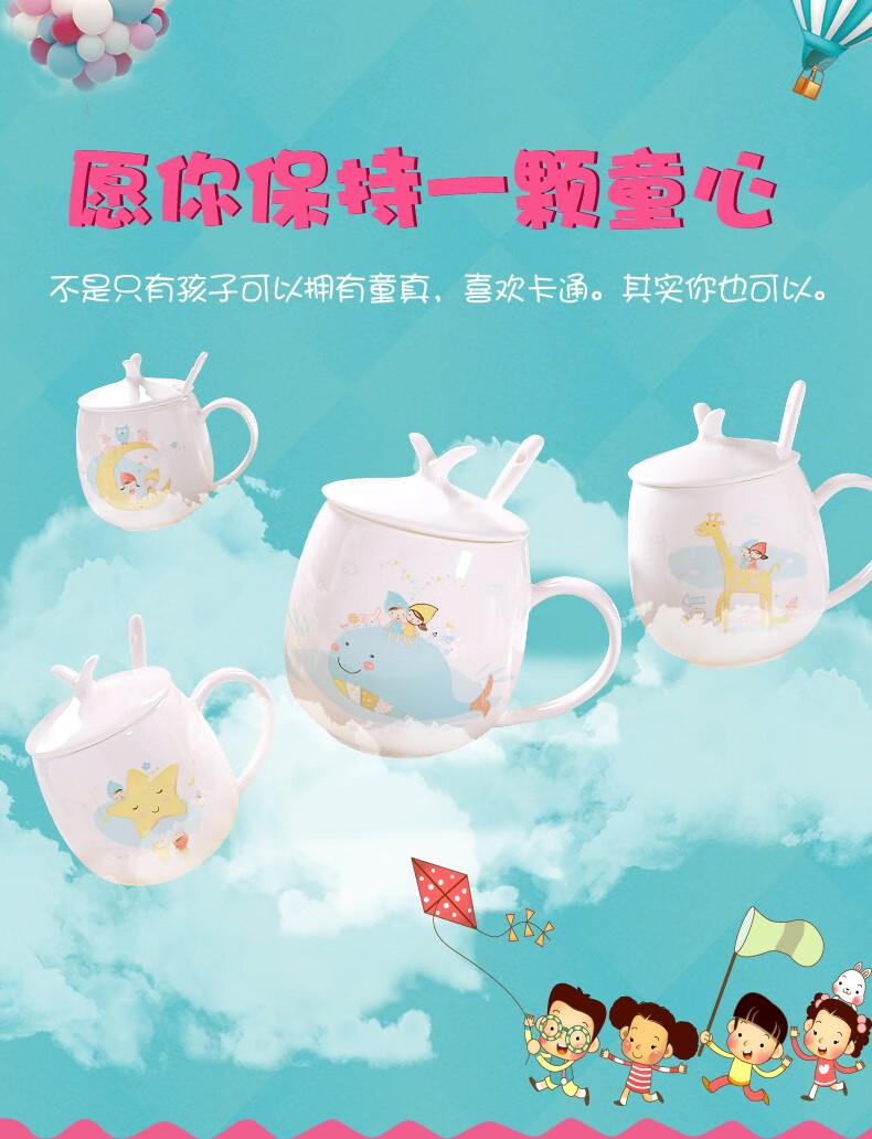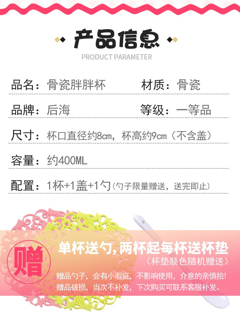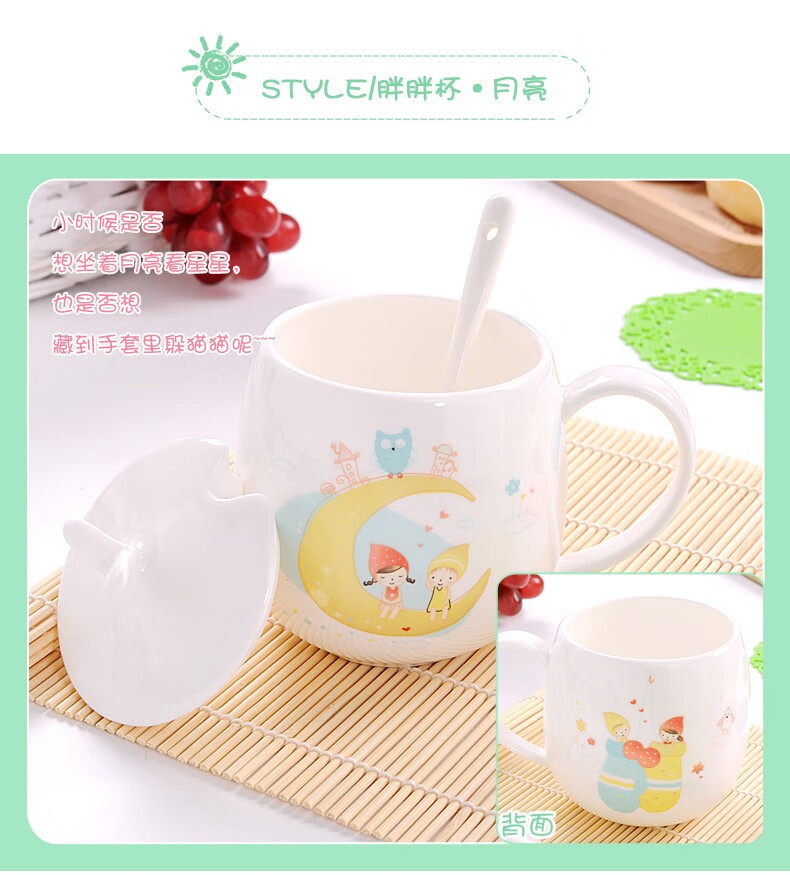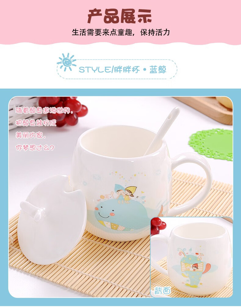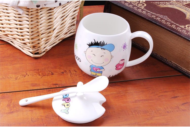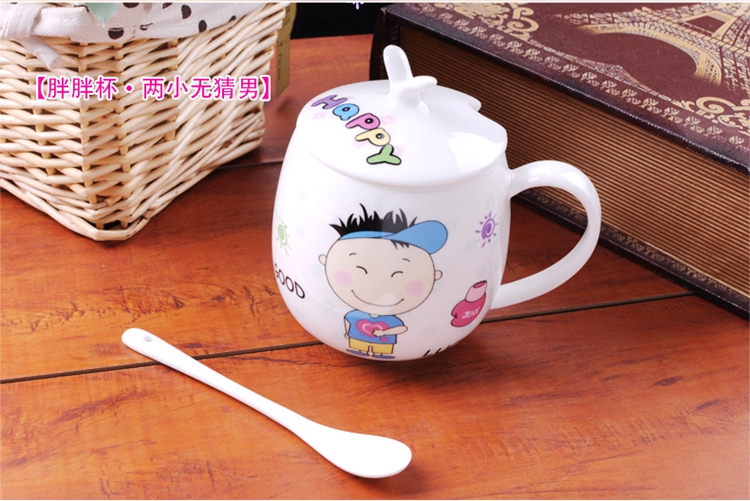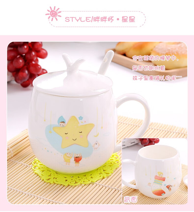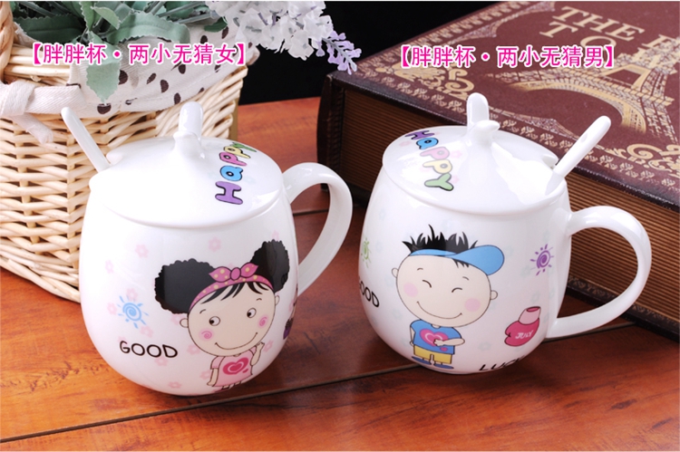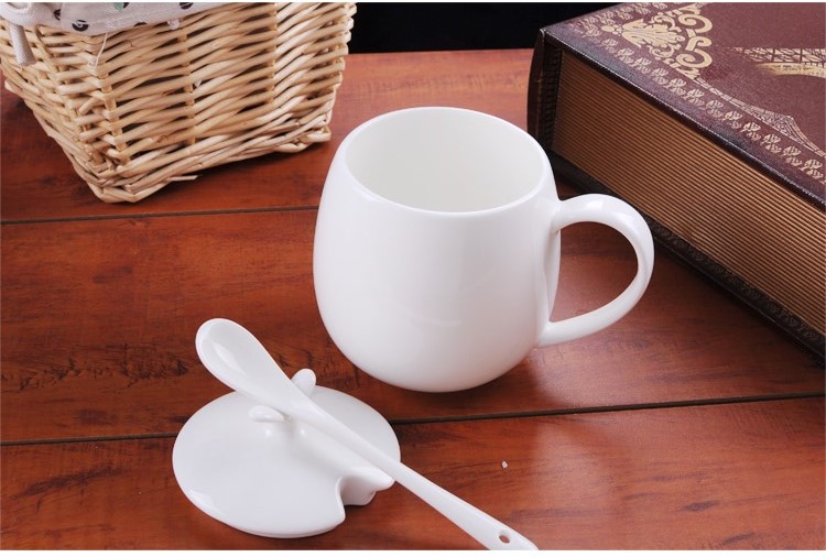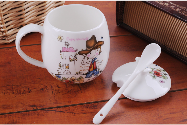 Houhai Cup Ceramic Cup Women's Mug with Lid and Spoon Household Drinking Cup Bone China Breakfast Cup Coffee Cup Girly Heart Fat Cup - Small Floral 400ML Microwaveable