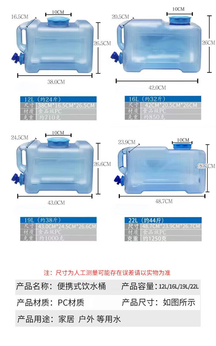 Baijie pure water bucket outdoor bucket with faucet large diameter water storage bucket self-driving tour portable outdoor drinking water bucket square style 12L (with faucet)