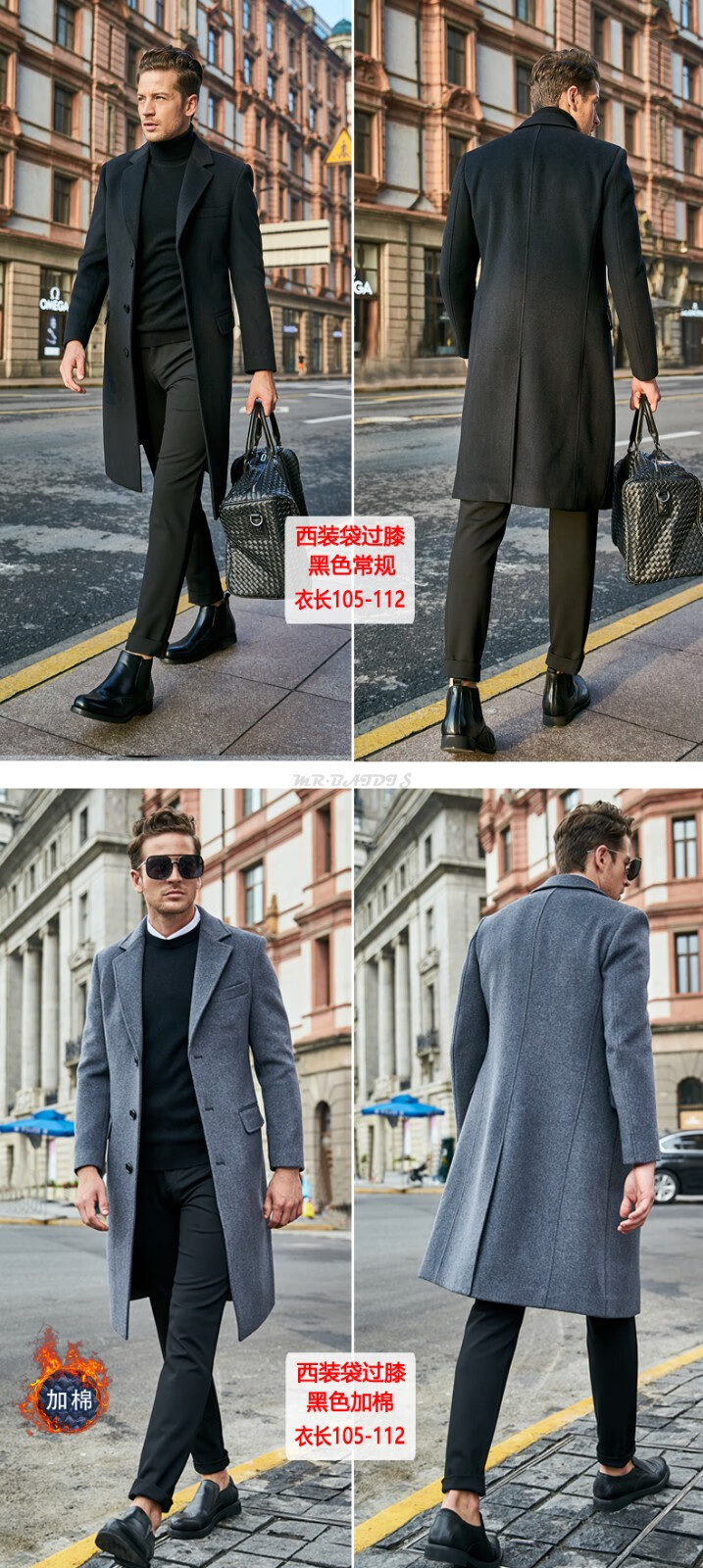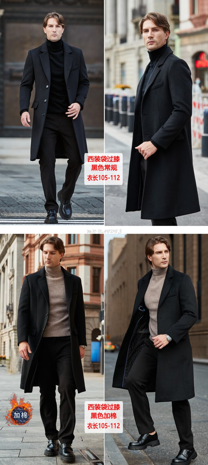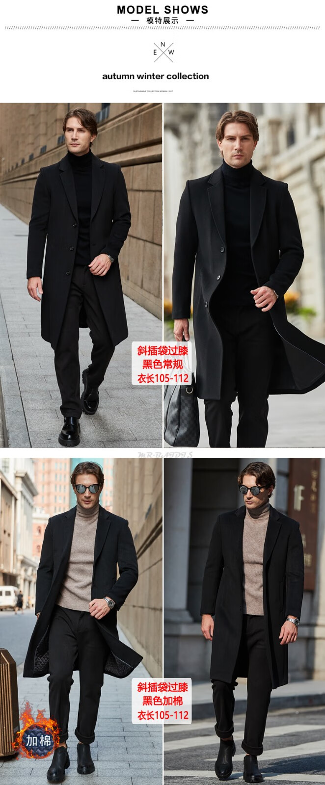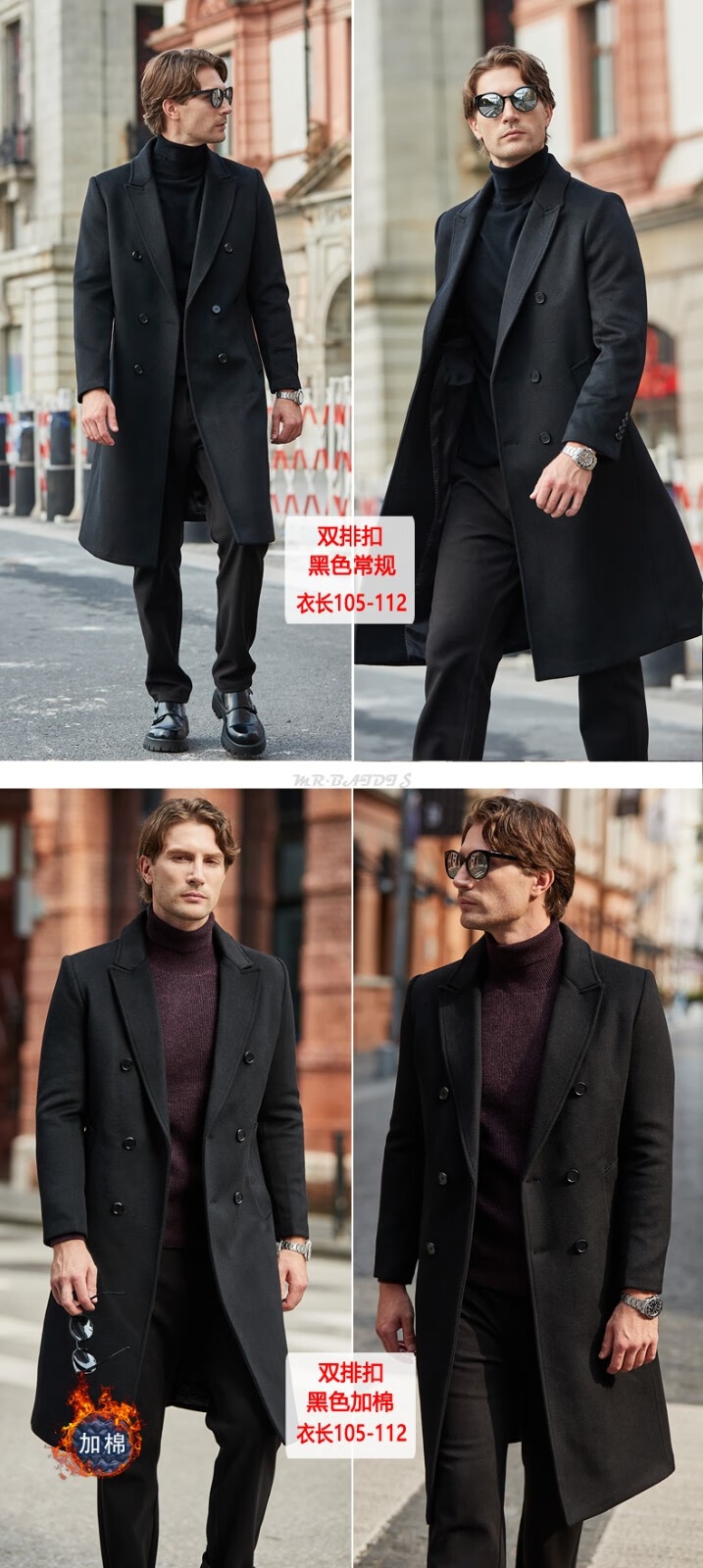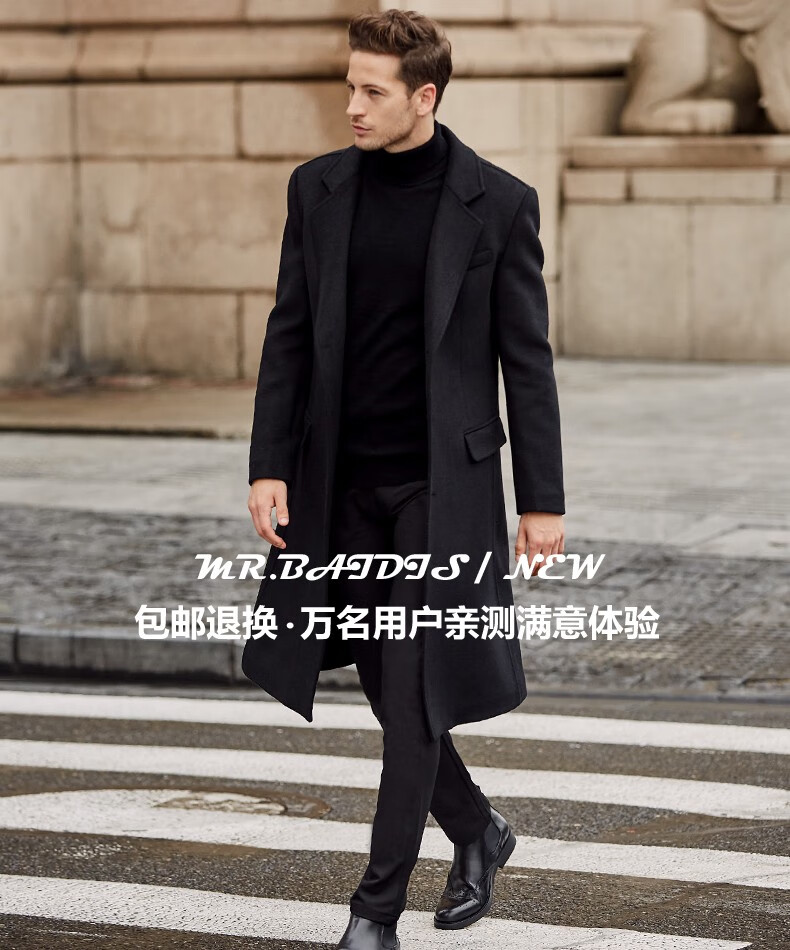 Mr.baidis high-end wool coat men's autumn and winter knee-length business casual windbreaker mid-length thickened woolen coat 1851 suit bag knee-length black regular regular length 105-112CM 3XL / suitable for weight 160-180Jin Jin equals 0.5 kg
