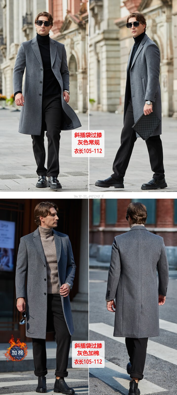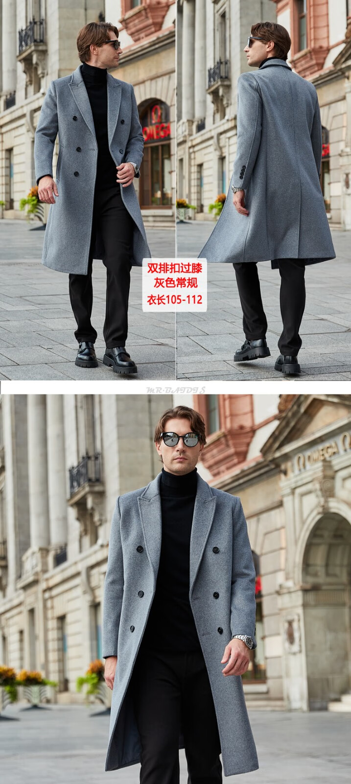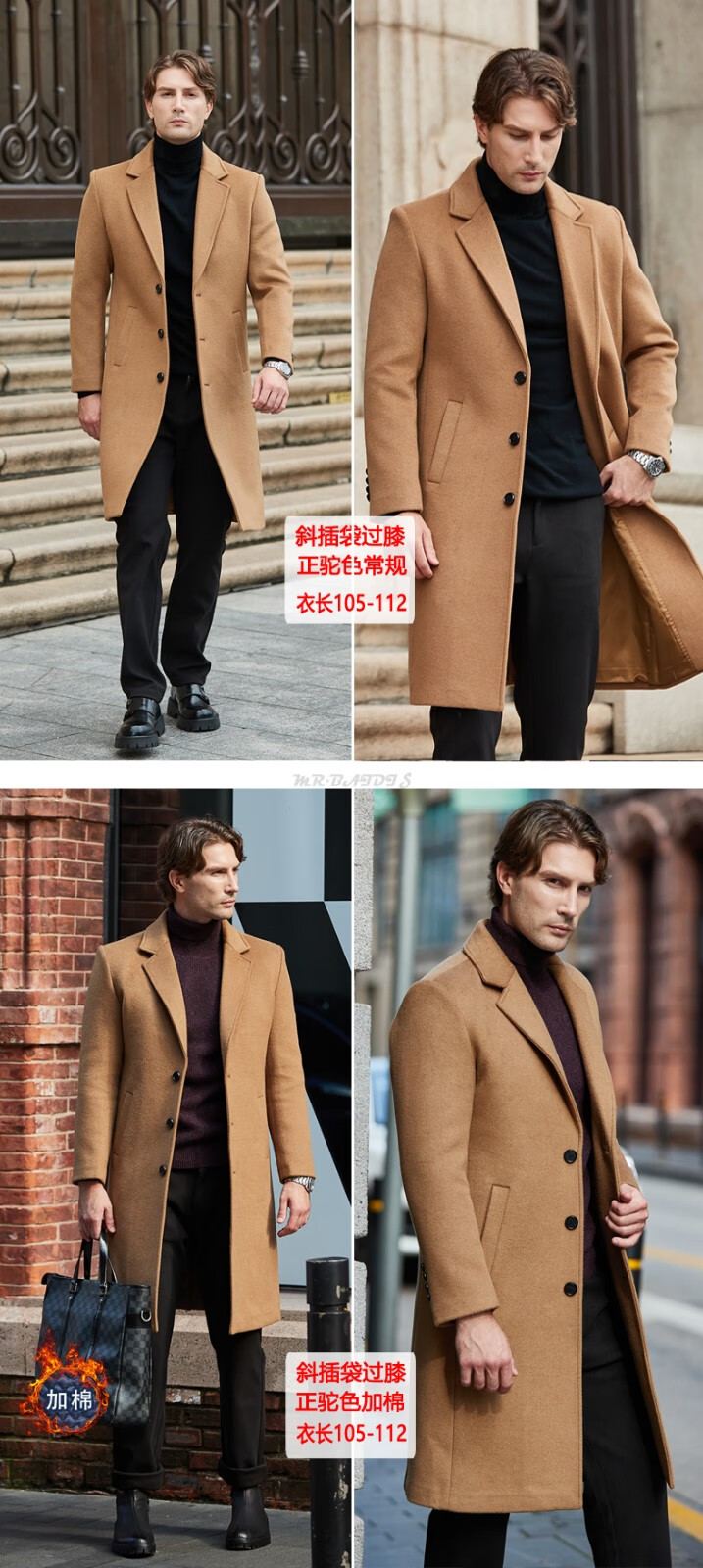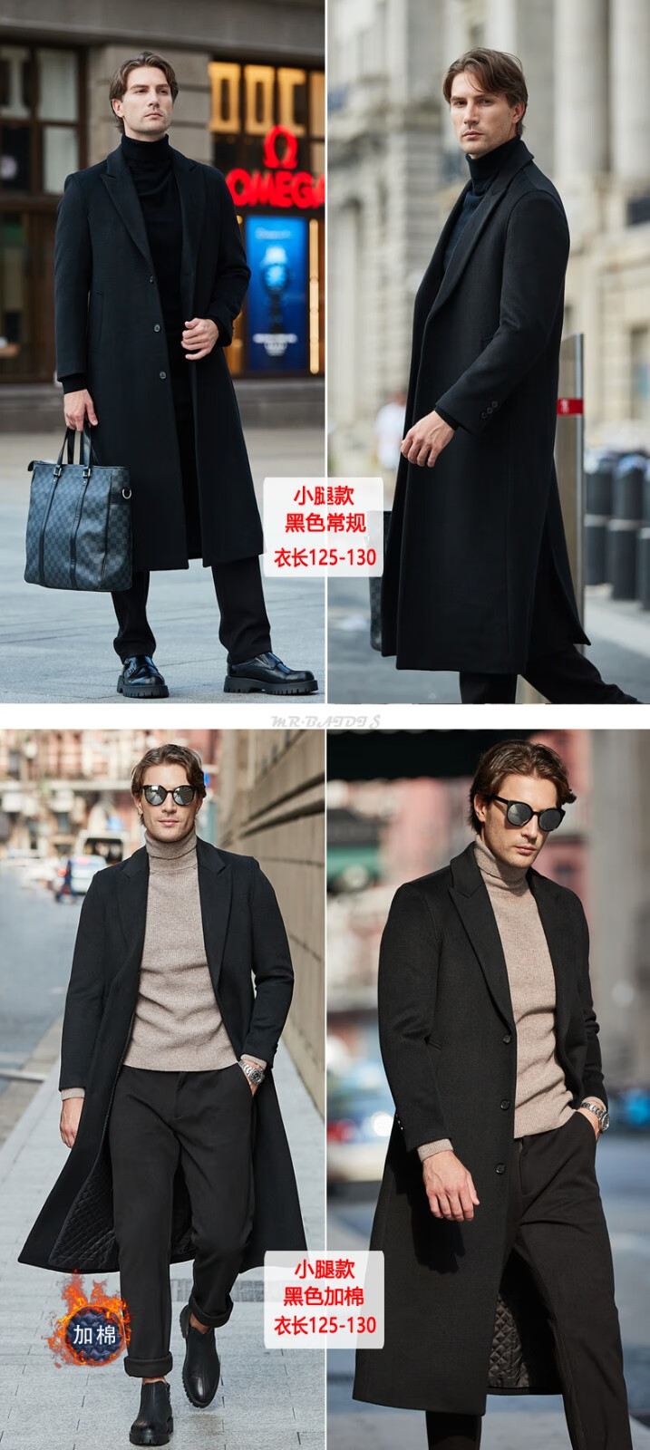 Mr.baidis high-end wool coat men's autumn and winter knee-length business casual windbreaker mid-length thickened woolen coat 1851 suit bag knee-length black regular regular length 105-112CM 3XL / suitable for weight 160-180Jin Jin equals 0.5 kg