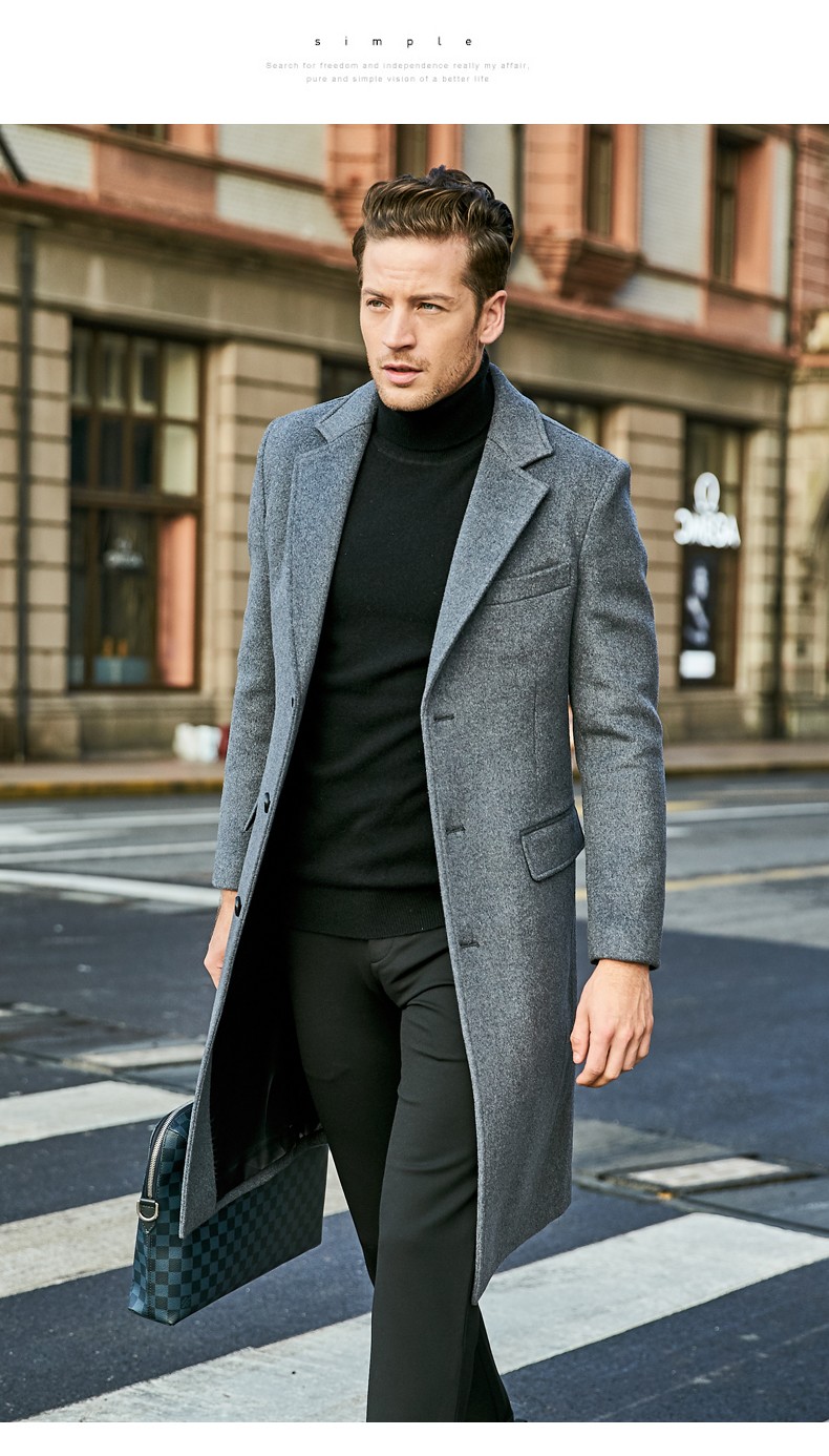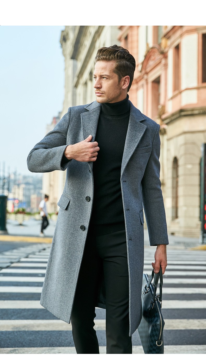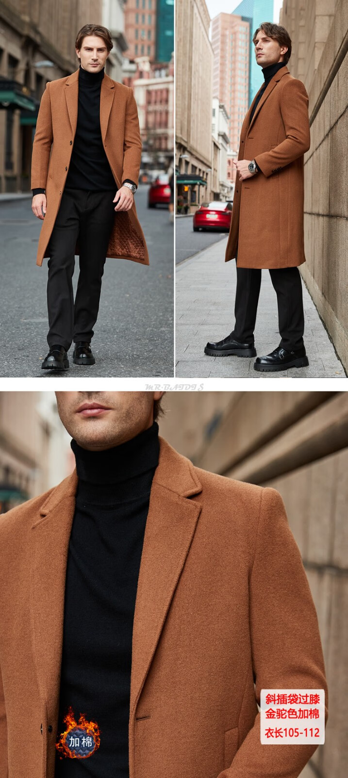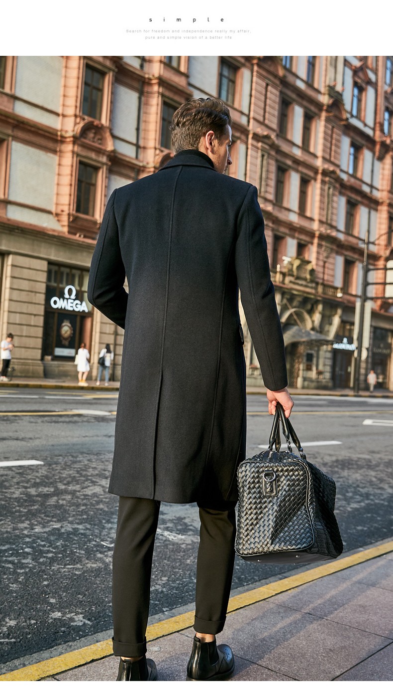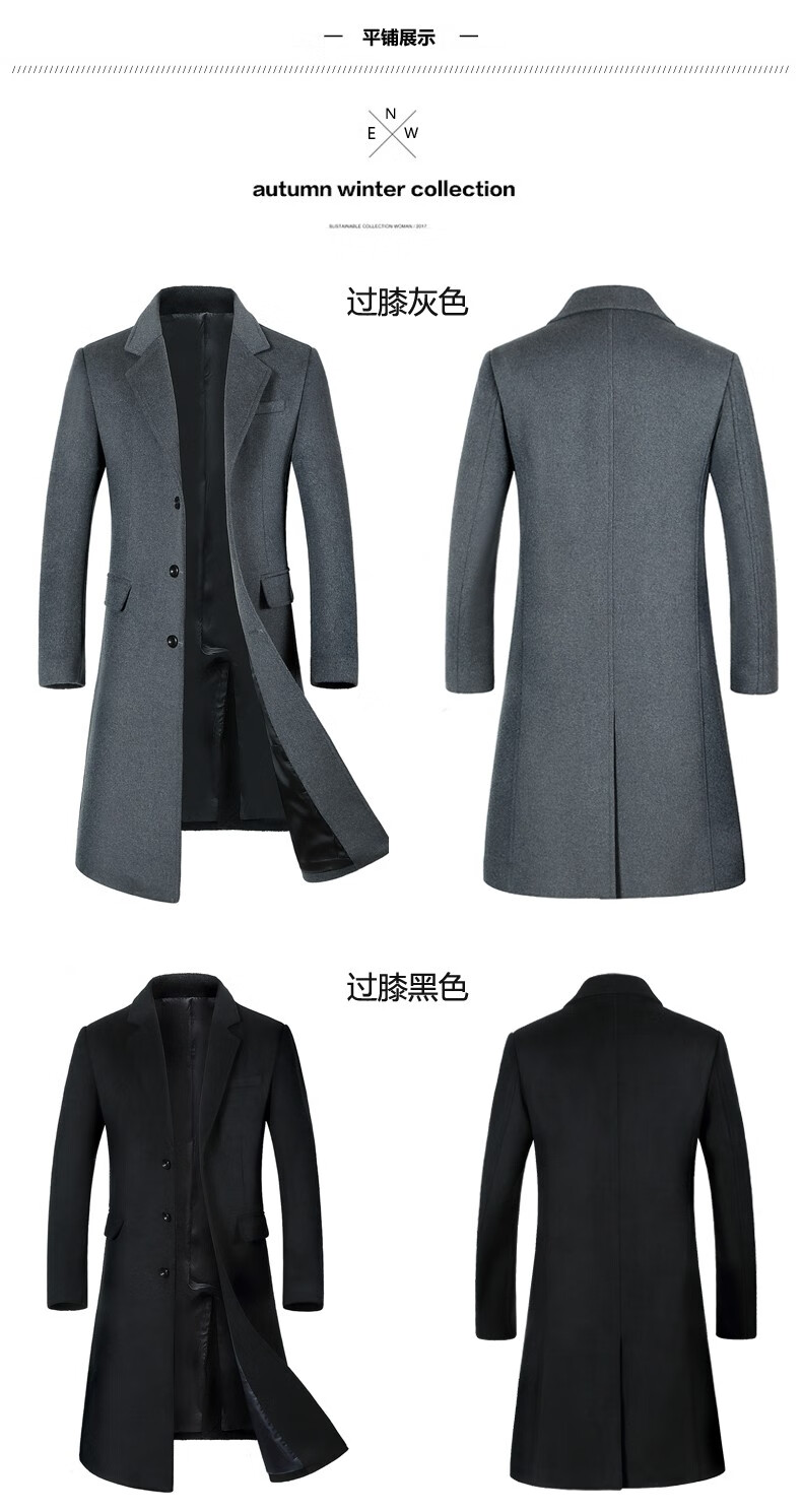 Mr.baidis high-end wool coat men's autumn and winter knee-length business casual windbreaker mid-length thickened woolen coat 1851 suit bag knee-length black regular regular length 105-112CM 3XL / suitable for weight 160-180Jin Jin equals 0.5 kg