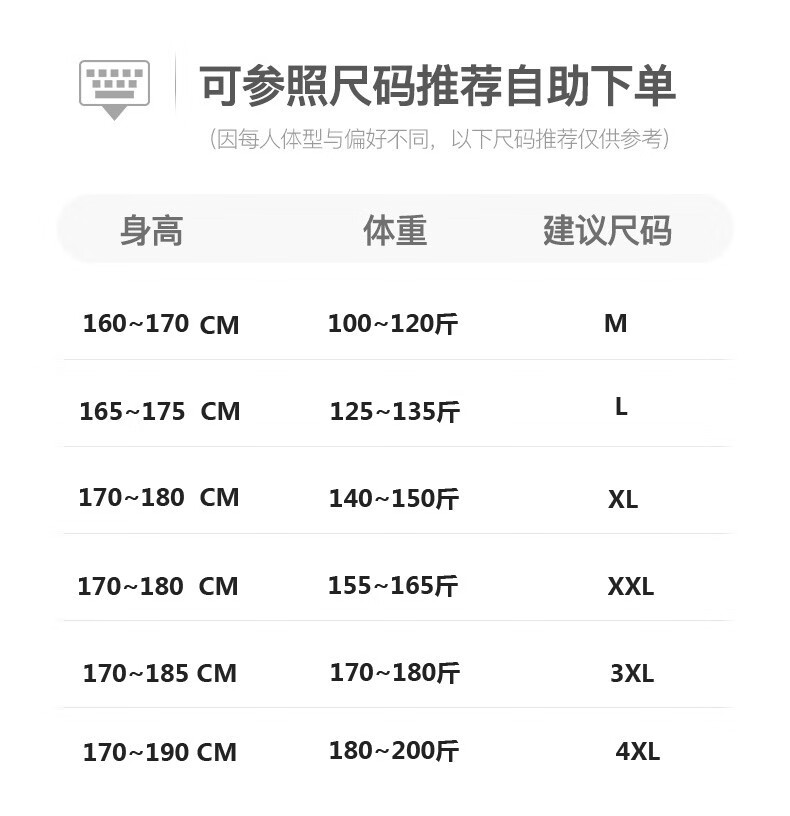 China (cm) 165 / 88-90 170 / 96-98 175 / 108-110 180 / 118-122 185 / 126-130