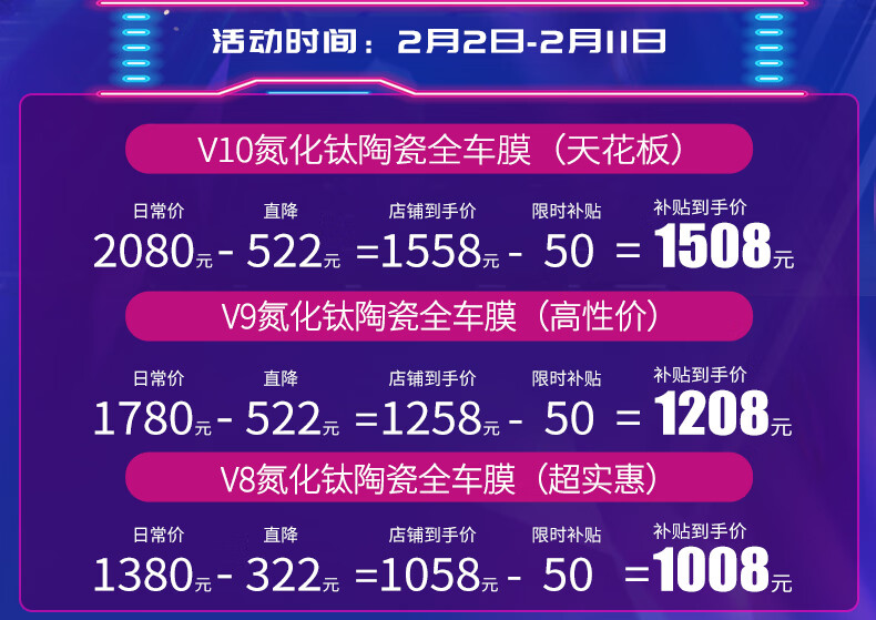 Meji (MZJJ) car film, car film, car film, solar film, insulation film, full car film, window glass privacy sunscreen and explosion-proof film, V8 titanium nitride ceramic full car film (HD front + light color side rear)