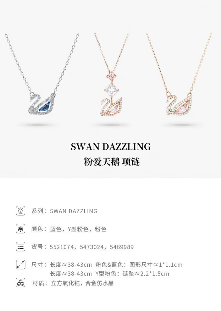 Swarovski (SWAROVSKI) Swan Elegant Swan Necklace Women's Pendant Light Luxury Niche Gift for Girlfriends Rose Gold Plated (Large) 5204134