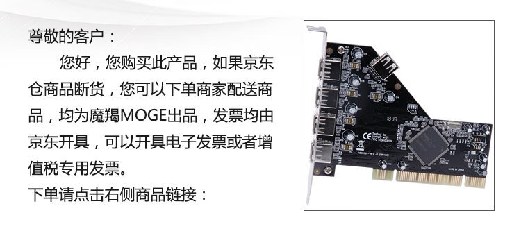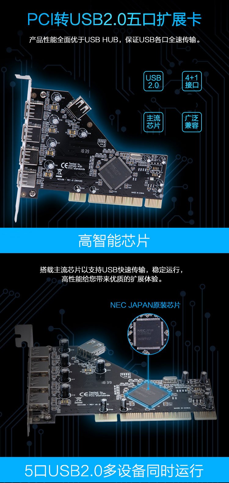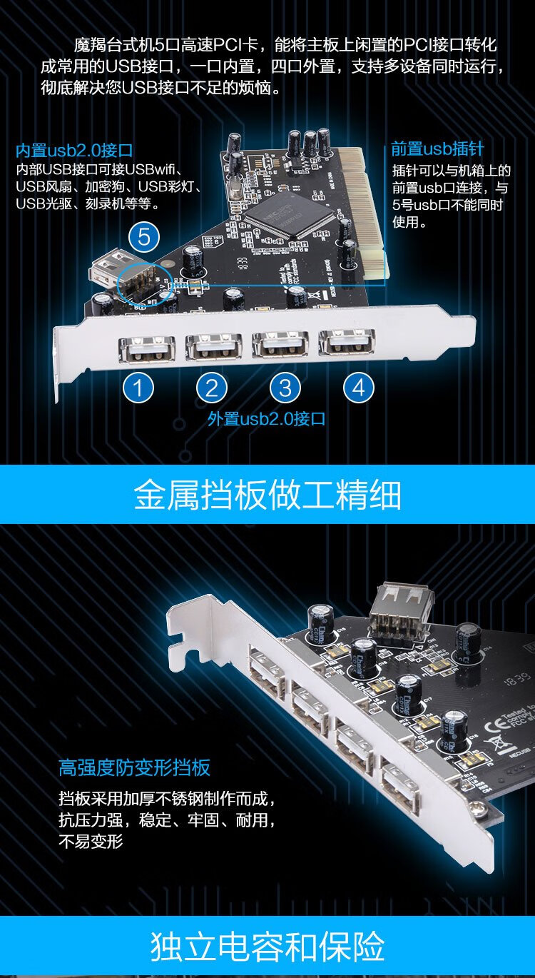 MOGE PCI to 5-port USB2.0 expansion card MC1010 desktop computer host rear 5-port USB2.0 adapter card