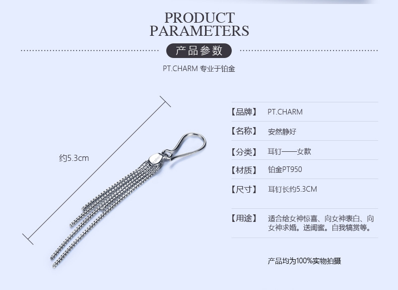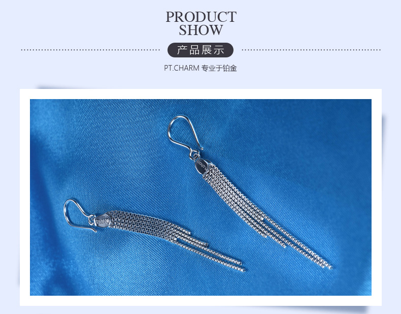 Pt.Charm platinum earrings for women pt950 platinum earrings urban fashion light luxury long tassel earrings in stock national inspection certificate 3.4-3.5 grams a pair