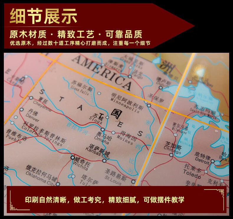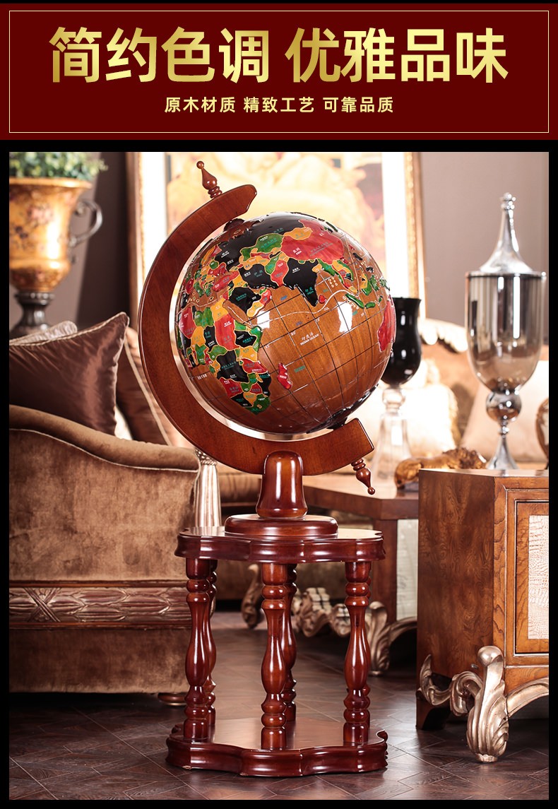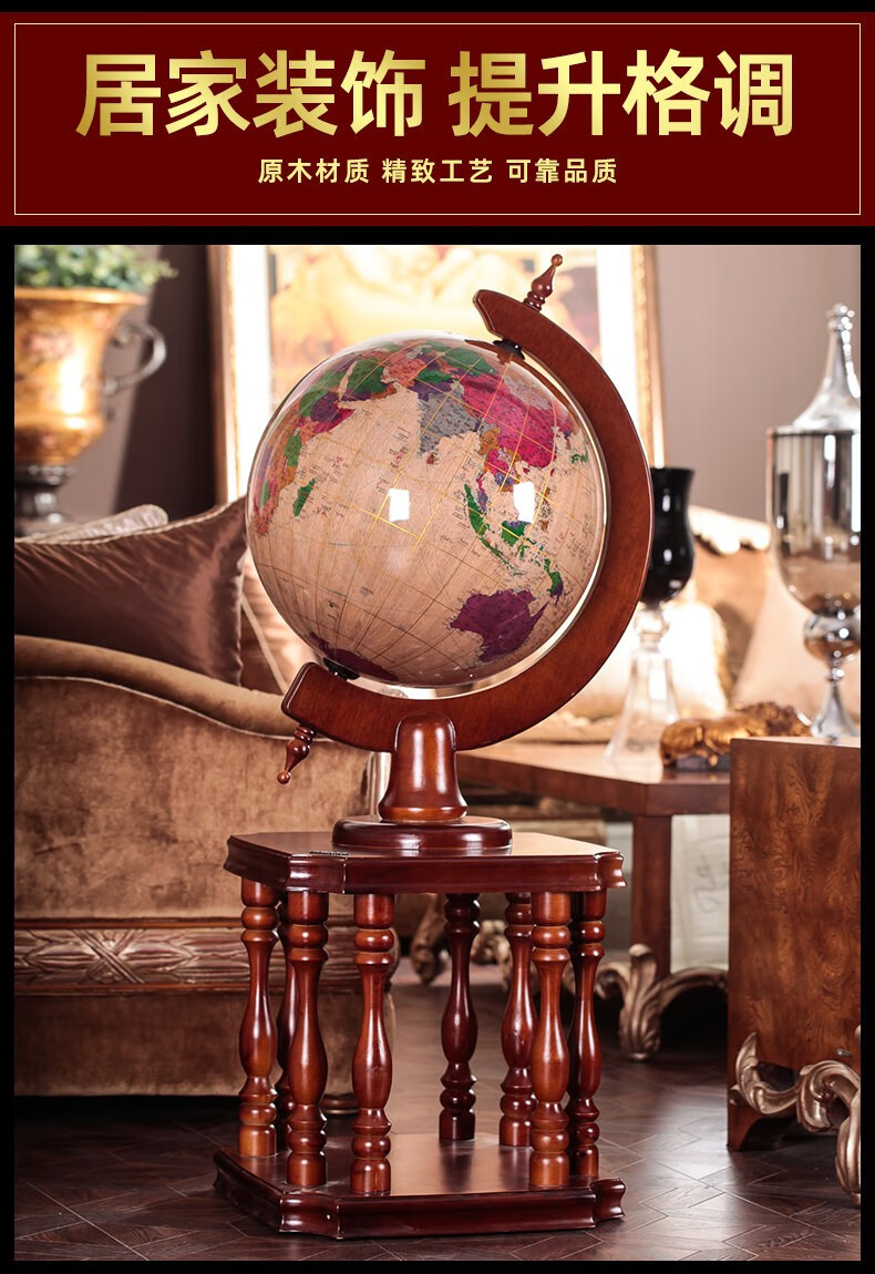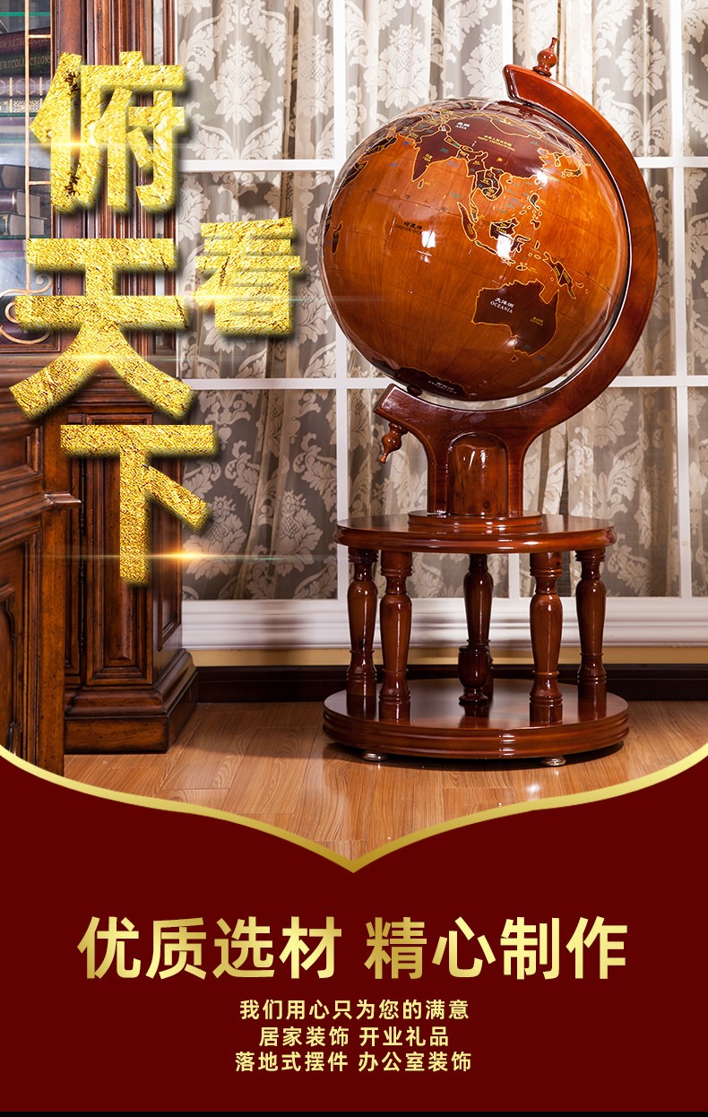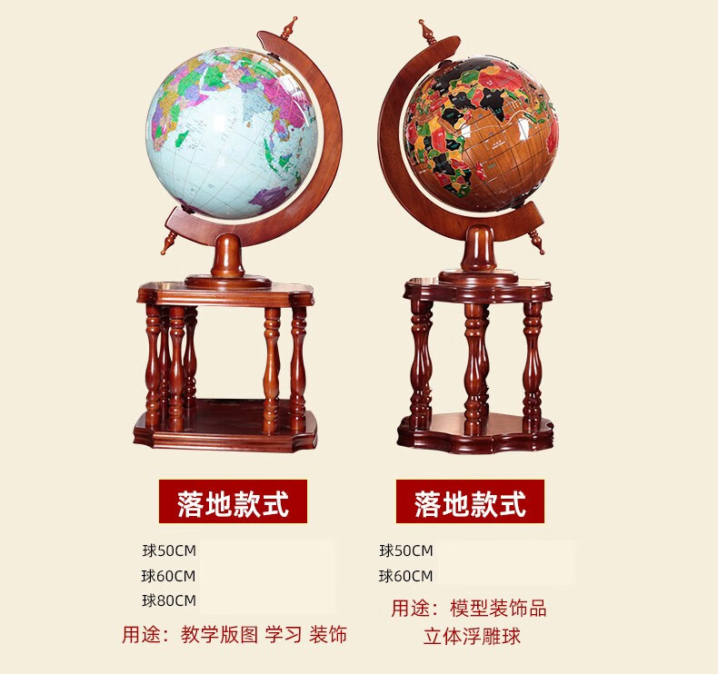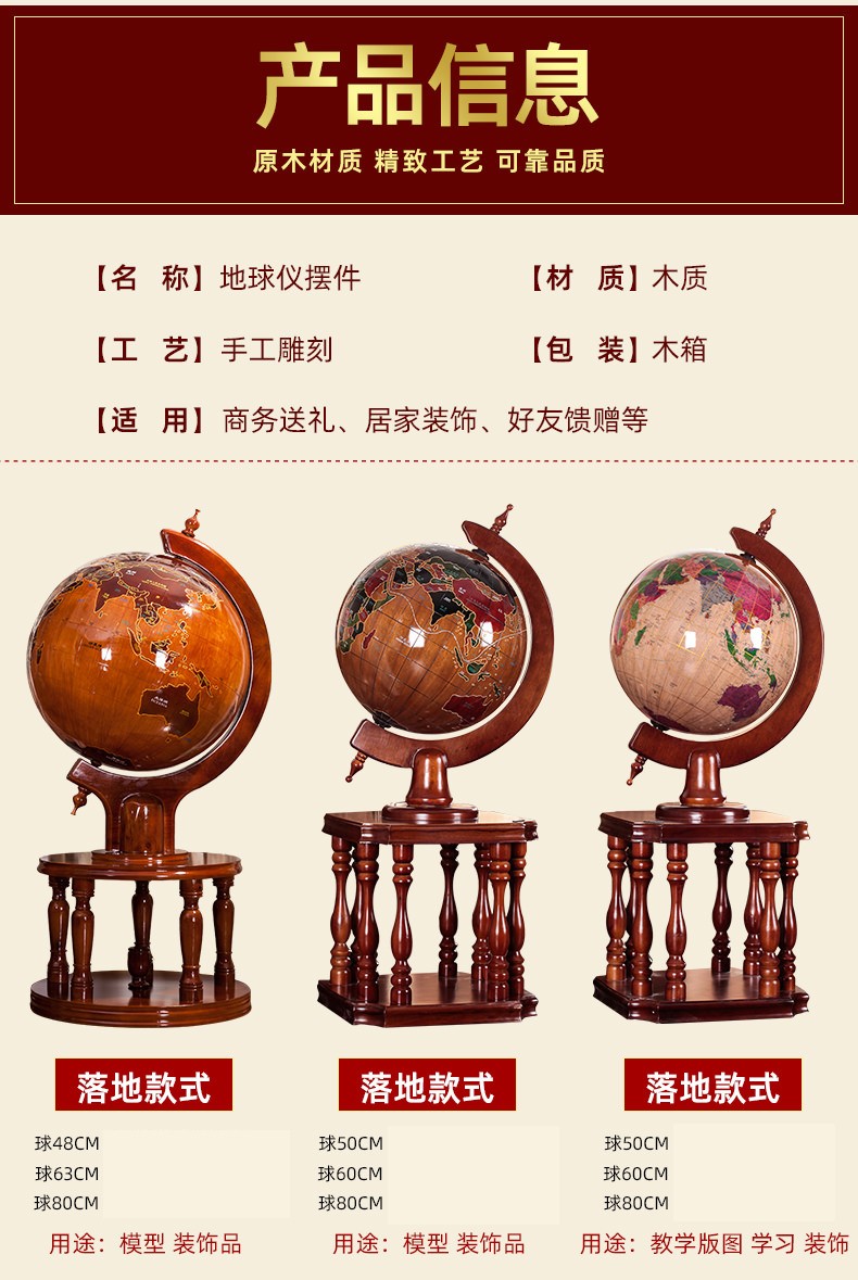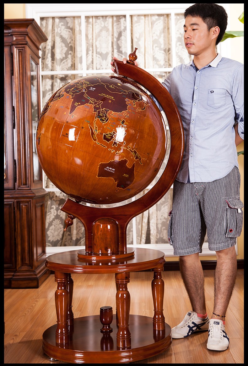 Botong Solid Wood Globe Office Craft Ornament School Celebration Housewarming Company Celebration Mid-Autumn Festival Gift Floor-standing Ornament Diameter 63CM Height 1.4 Meters Solid Wood Ball Round Bottom