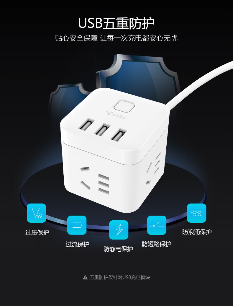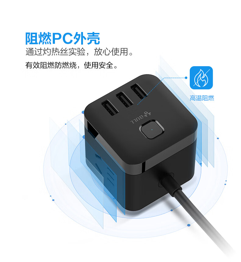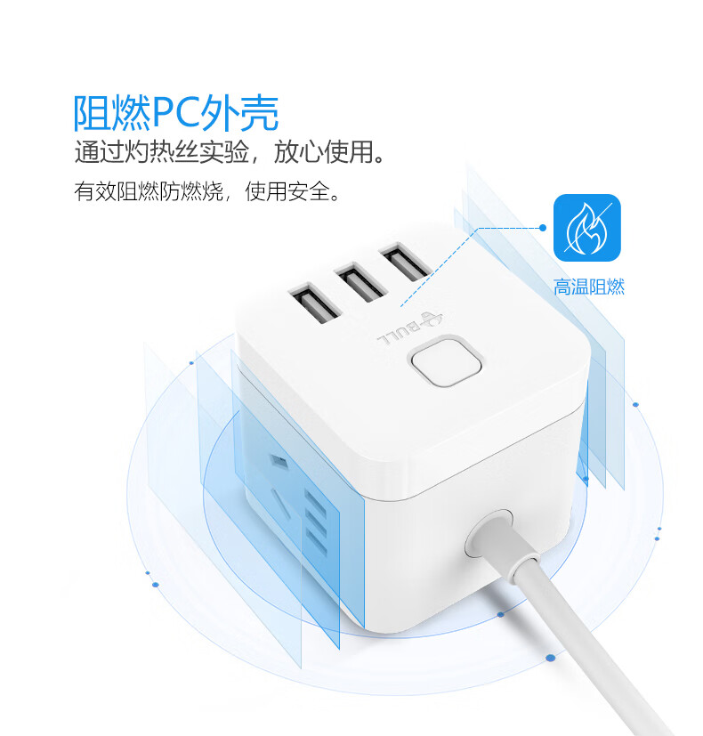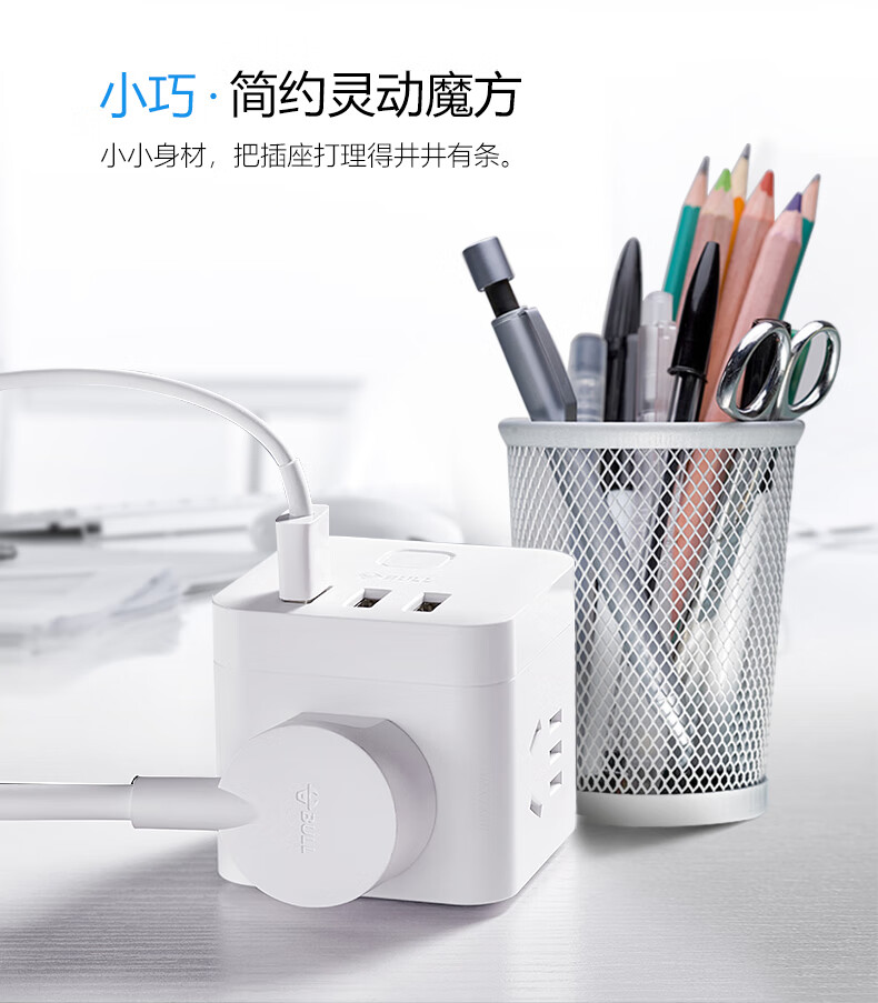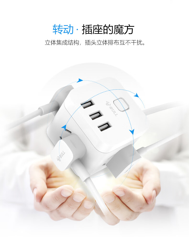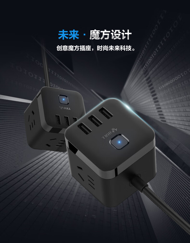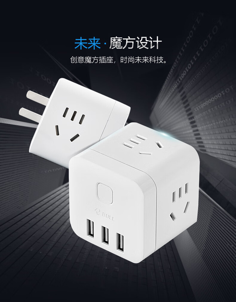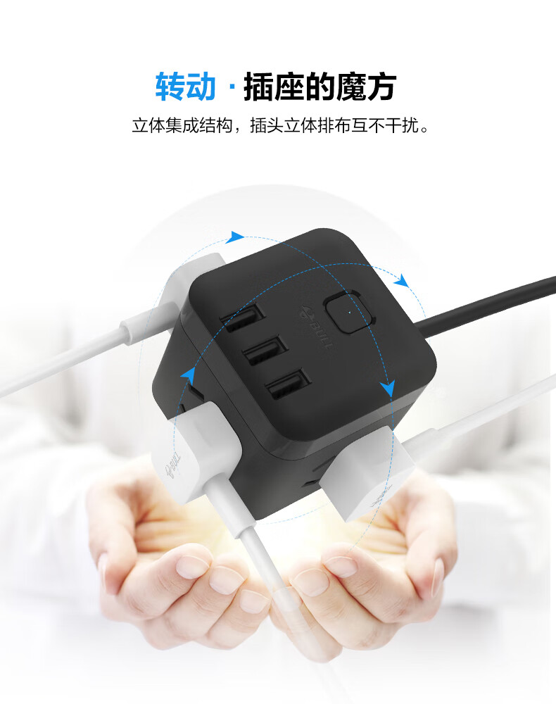 BULL Rubik's Cube Smart USB Socket Socket/Smart USB Socket/Plug Strip/Plug Board 3 Positions + 3 USB Total Control 1.5 Meters White-U303U