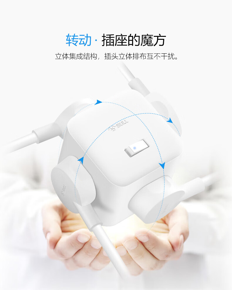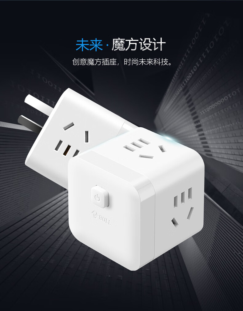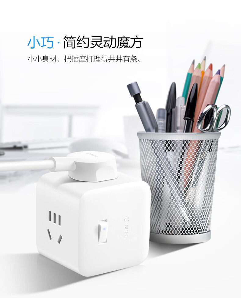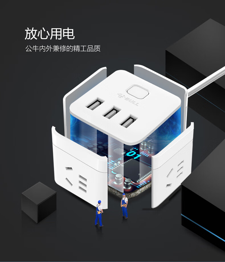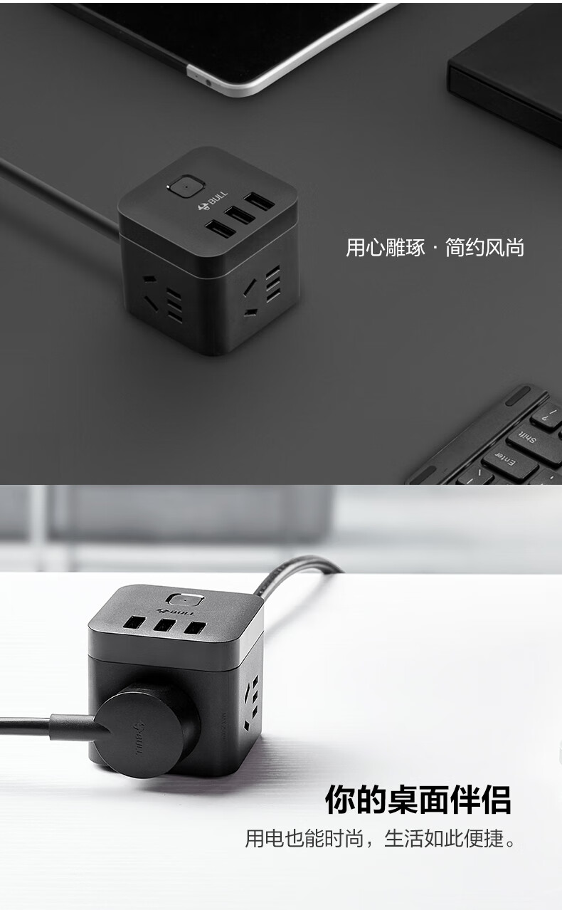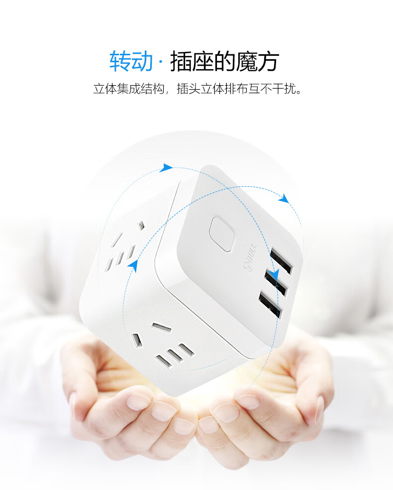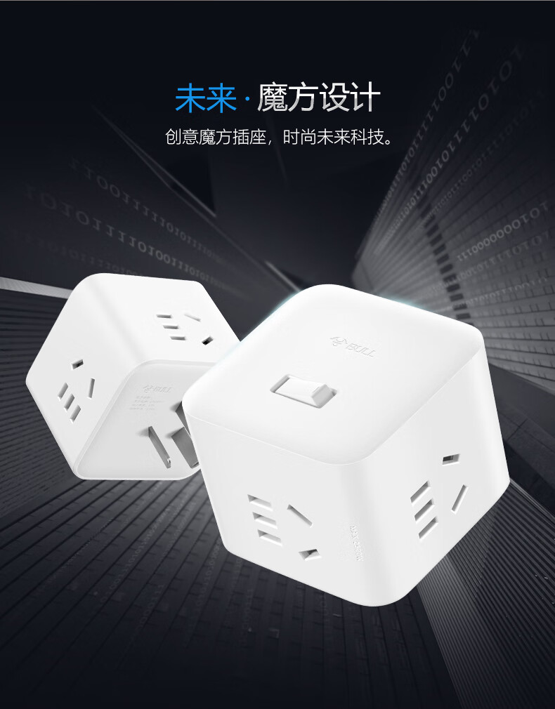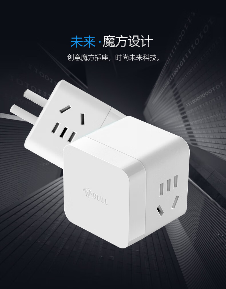 BULL Rubik's Cube Smart USB Socket Socket/Smart USB Socket/Plug Strip/Plug Board 3 Positions + 3 USB Total Control 1.5 Meters White-U303U