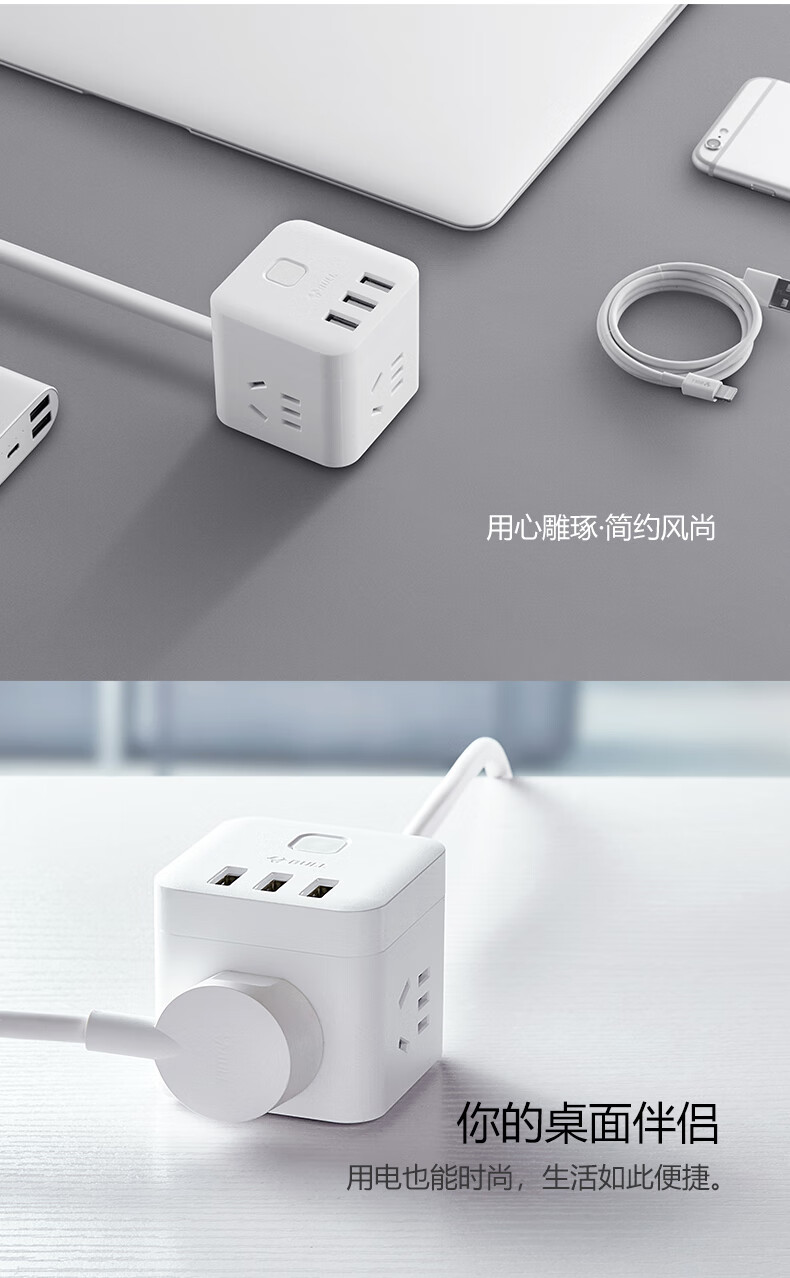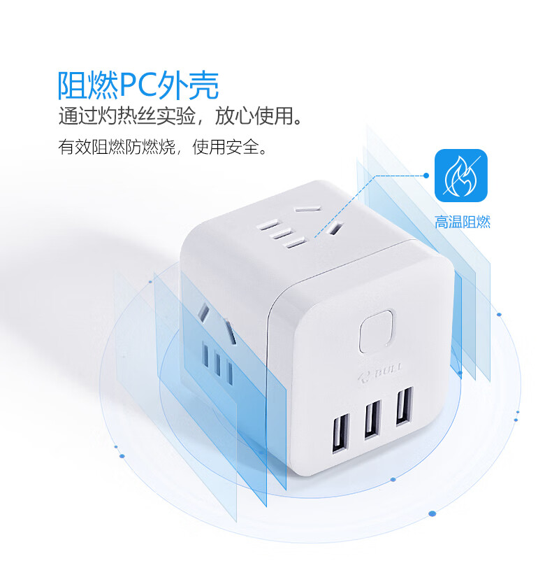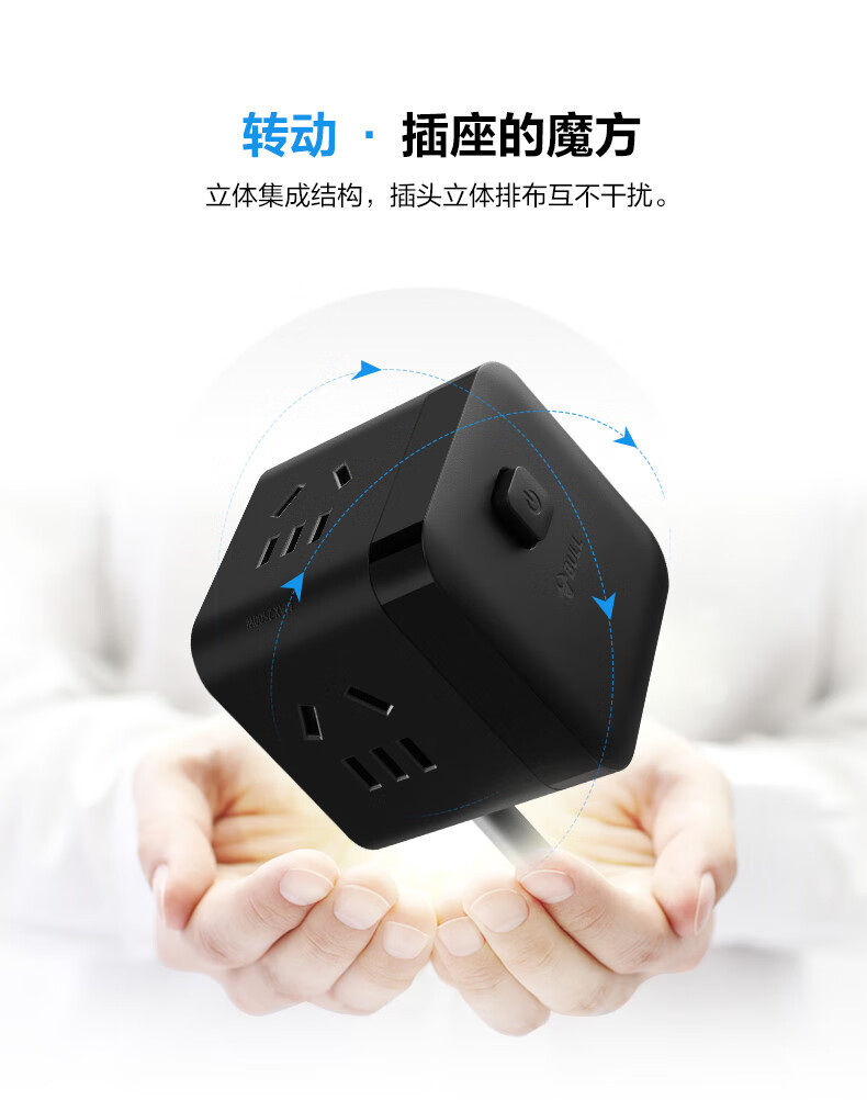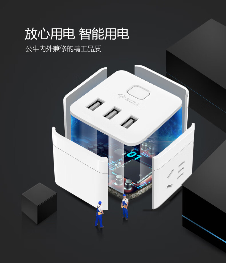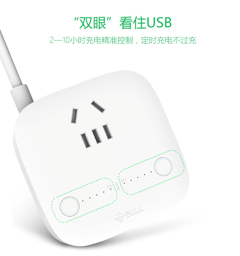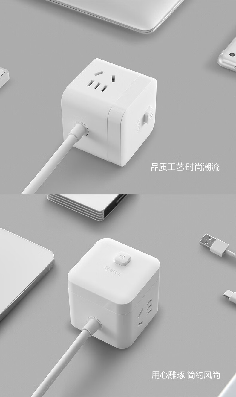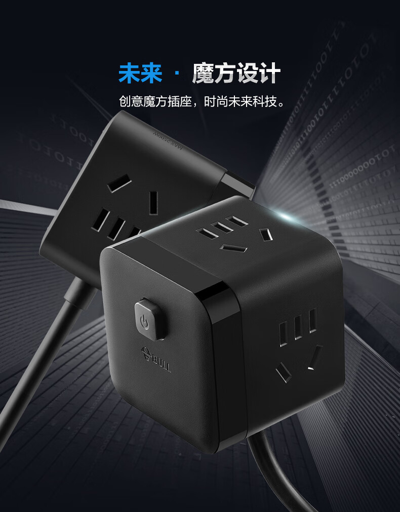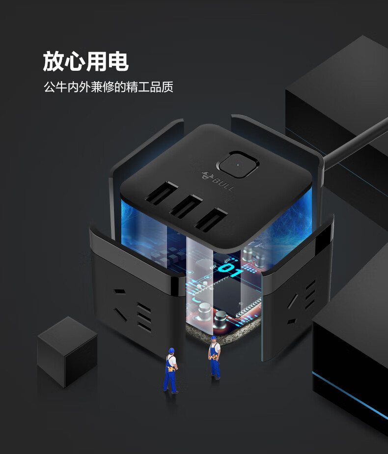 BULL Rubik's Cube Smart USB Socket Socket/Smart USB Socket/Plug Strip/Plug Board 3 Positions + 3 USB Total Control 1.5 Meters White-U303U
