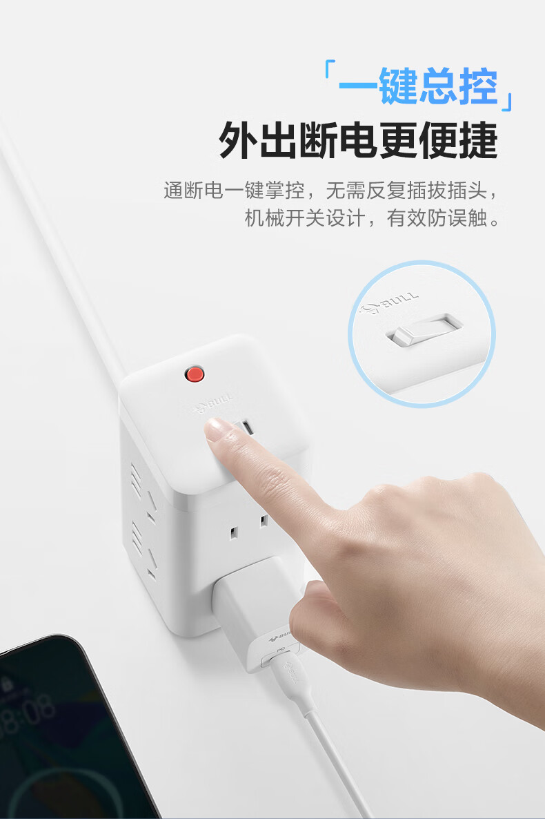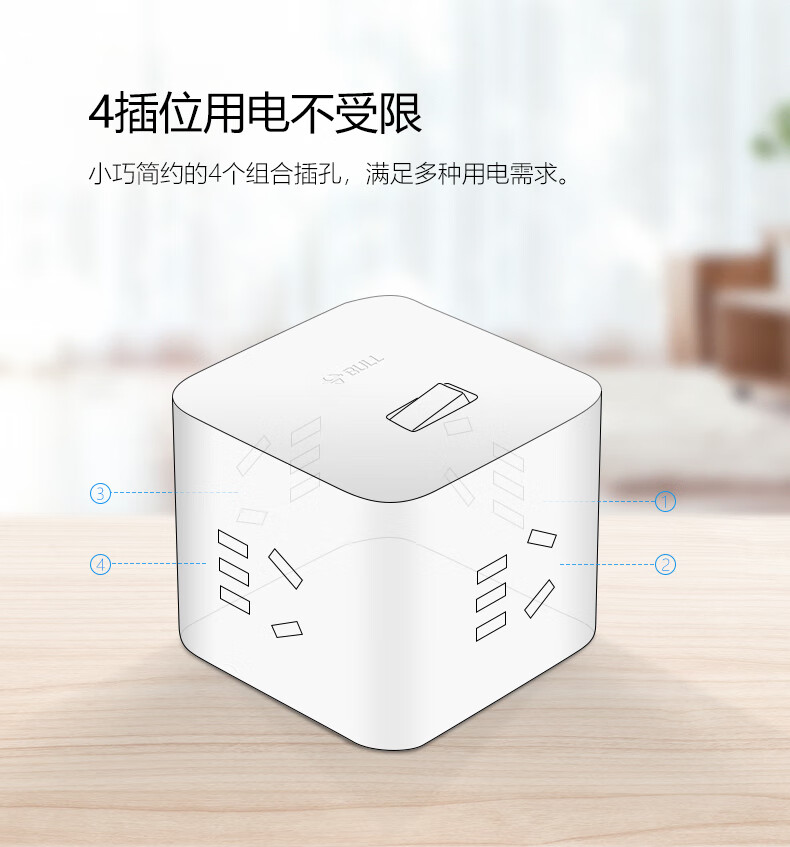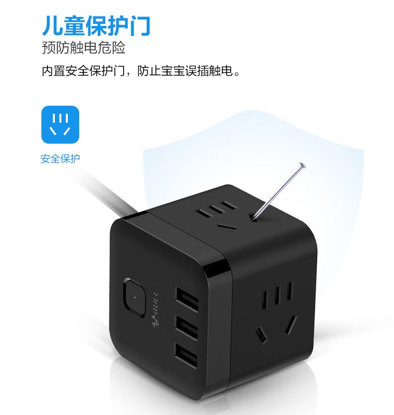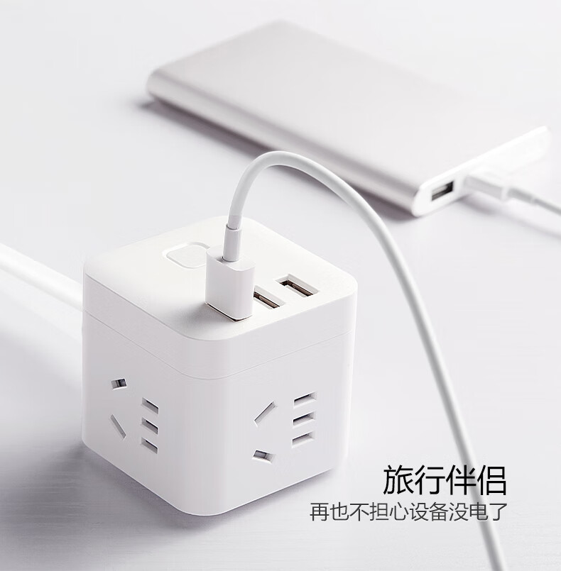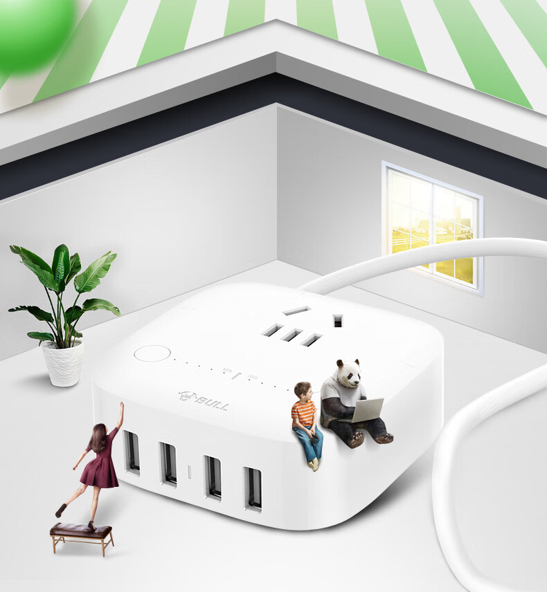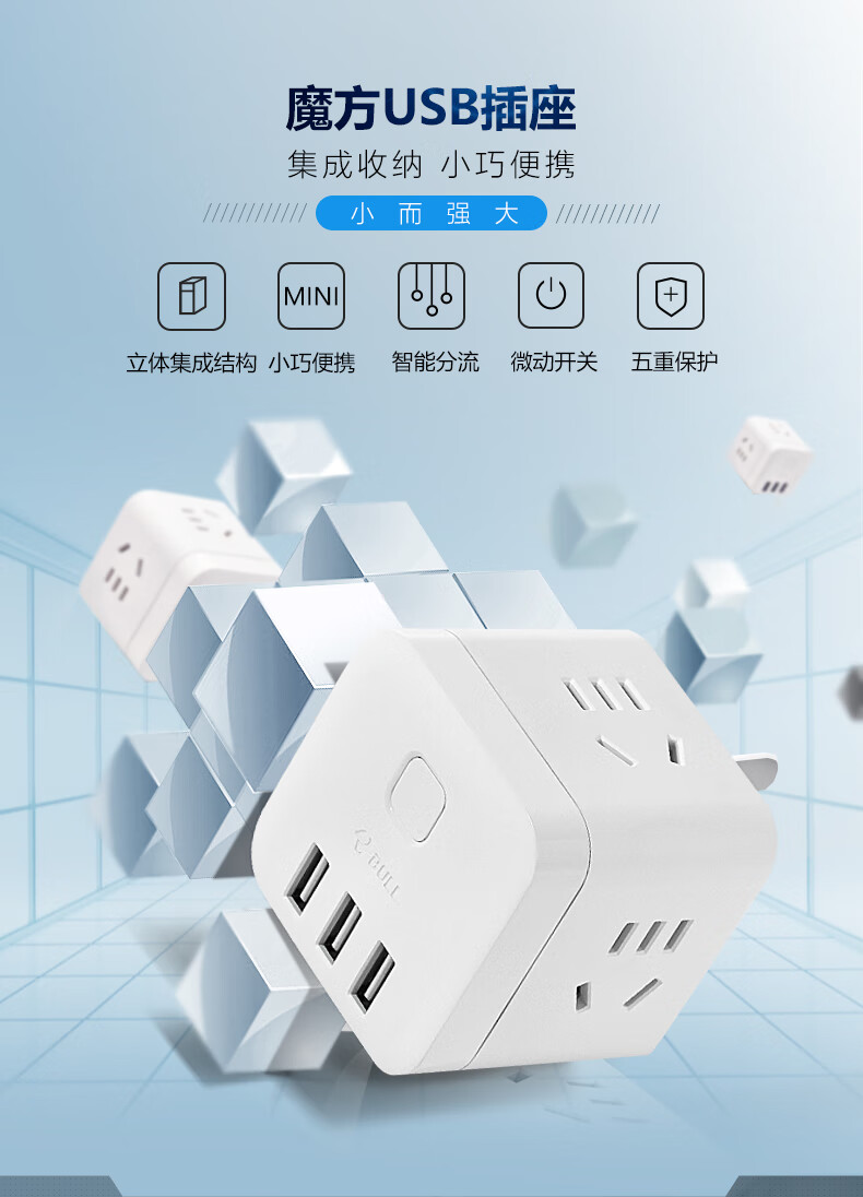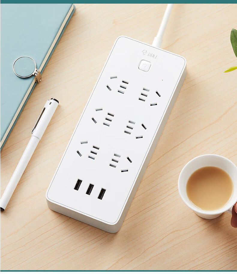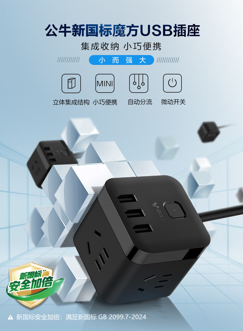 BULL Rubik's Cube Smart USB Socket Socket/Smart USB Socket/Plug Strip/Plug Board 3 Positions + 3 USB Total Control 1.5 Meters White-U303U